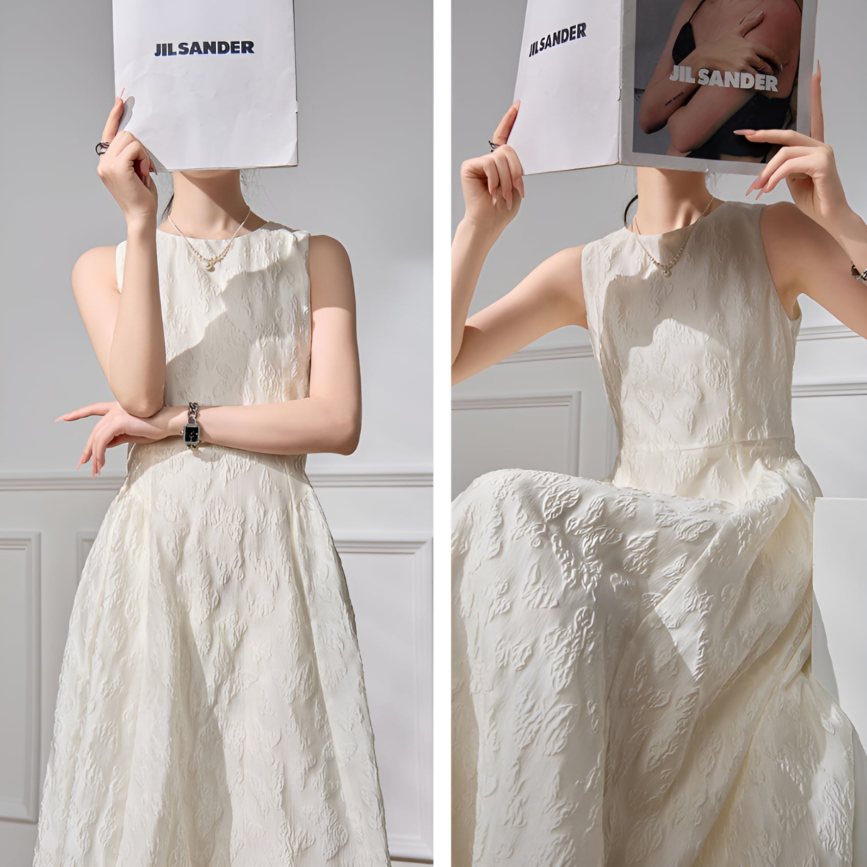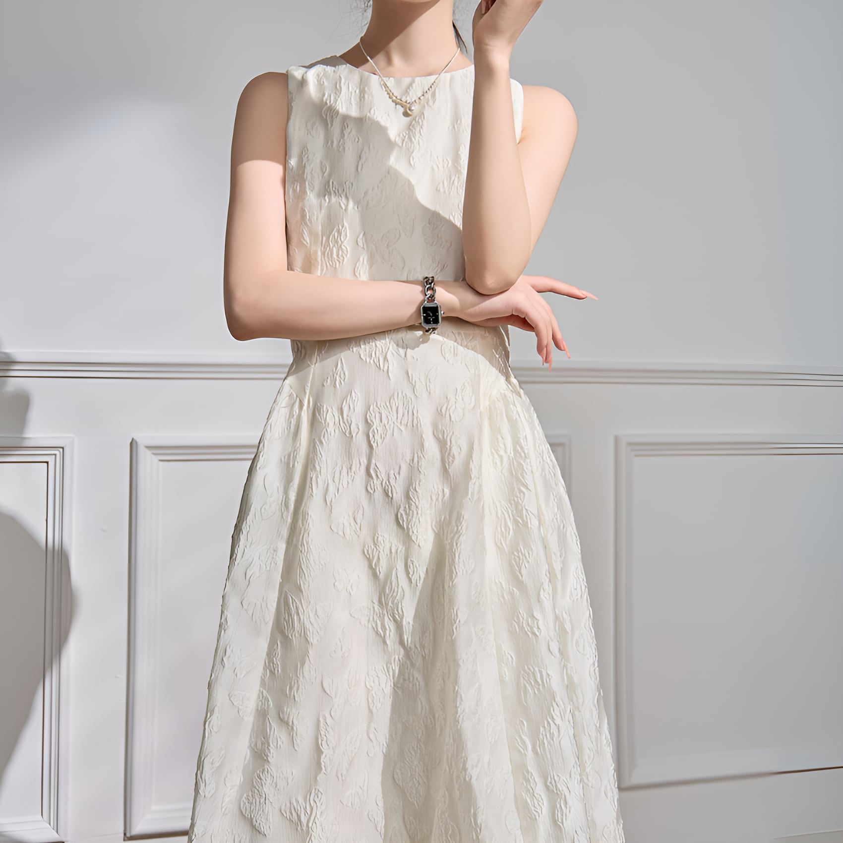 フレンチエンボスロングワンピースは、オフホワイトのエレガントな色合いが特徴のアイテムです。ノースリーブデザインにより、夏の暑い日や、リゾートシーンでも涼しげに着こなせます。ハイウエストのシルエットはスタイルを美しく引き立て、フレンチエンボス加工が施された生地が、独特の上品さを演出します。特別な日のお出かけやカジュアルな集まりにピッタリの一着です。こちらのワンピースで、洗練されたスタイルを楽しんでみてはいかがでしょうか。