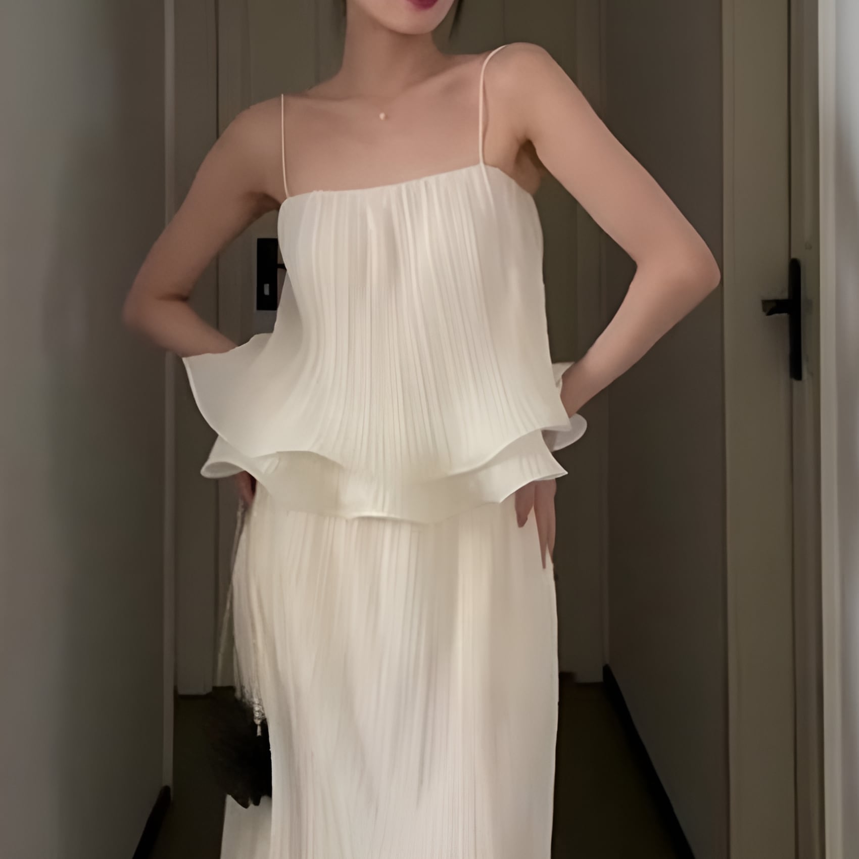 フレンチフィッシュテールプリーツキャミソール&スカート BM1103