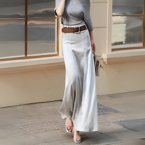 ハイウエストドレープルーズスリムAラインスカートは、スタイリッシュなデザインと上品なカラーが特徴の一着です。美しいライトグレーのカラーが、あらゆるスタイルにエレガンスをプラスし、ドレープが施されたシルエットは動くたびに柔らかな印象を与えます。多様なシーンに対応可能で、デイリールックはもちろん、フォーマルなイベントにもぴったりです。心地よい着心地を体験しながら、自由なスタイリングを楽しんでみてはいかがでしょうか。