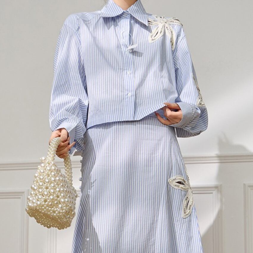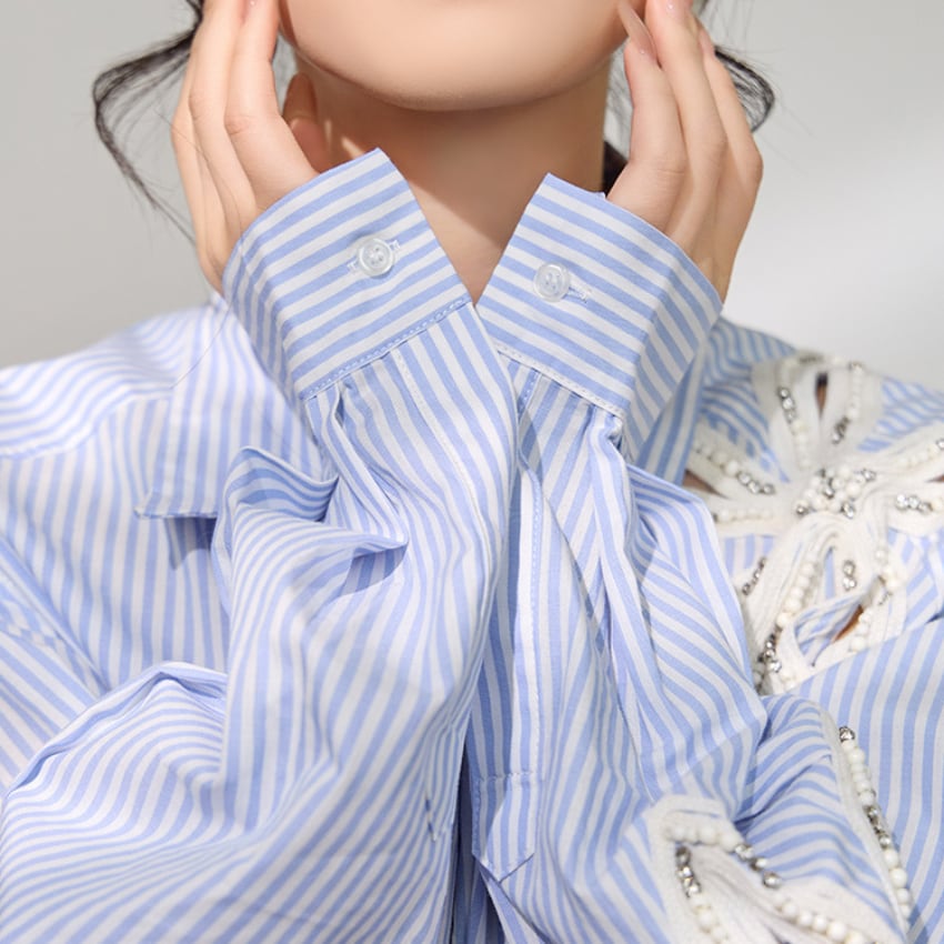 中空スプライシング刺繍ブルーストライプシャツ BM1154