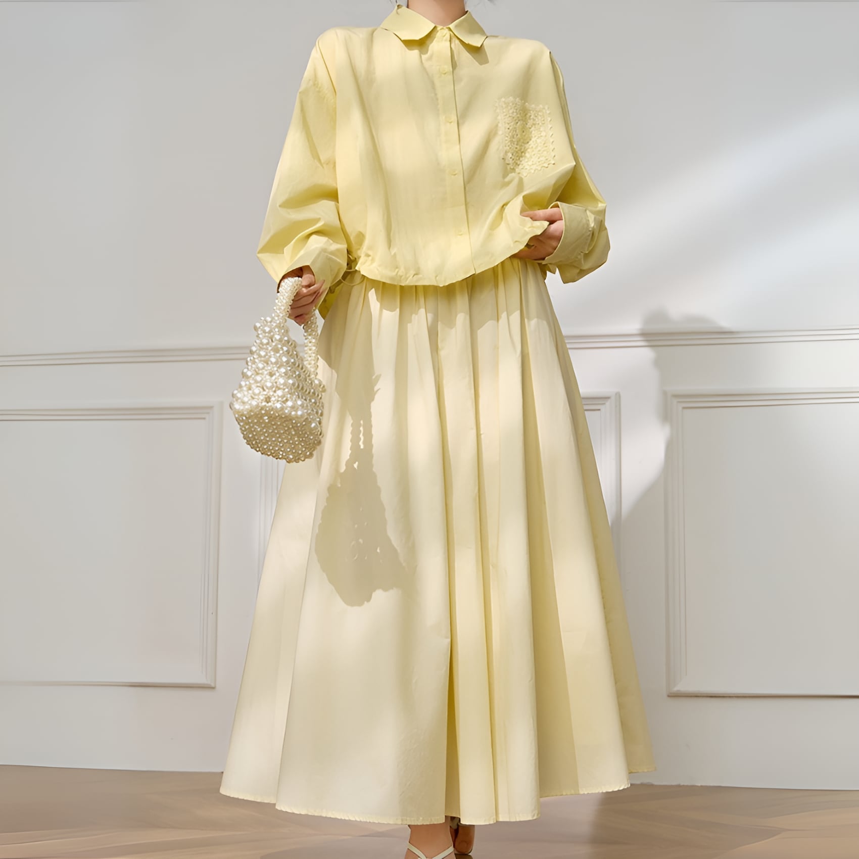 スパンコールレースドローストリングフレンチプチイエローシャツは、華やかさとエレガンスが融合した一枚です。魅力的なイエローカラーとスパンコールのレースが、さりげなく輝きを演出し、特別な日のコーディネートにもぴったりです。長袖のデザインは、シンプルながらも洗練された印象を与え、どんなスタイルにも相性抜群です。スウェットやデニムとのコーディネートでカジュアルに、スカートやパンツと合わせればフォーマルな雰囲気にも変化させることができます。便利なドローストリングデザインは、調整が可能で、自分らしいスタイリングを楽しむことができるでしょう。