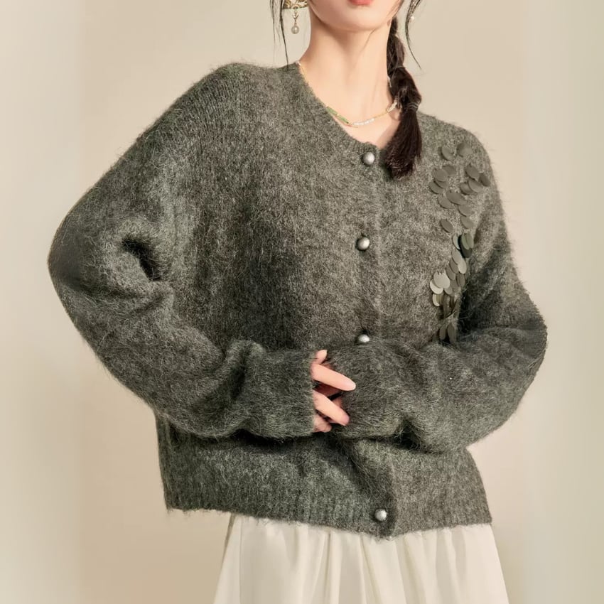 デザインセンススパンコールニットカーディガンは、シックでありながら、柔らかな肌触りが魅力のアイテムです。やわらかいニット素材が心地よく、ゆったりとしたシルエットは、リラックスしたトレンド感を演出します。ホワイトとグレーの2色展開で、スタイリングの幅を広げてくれることでしょう。カジュアルなコーディネートにはもちろん、特別なシーンにもぴったりです。デザイン性が高いこちらのカーディガンで、あなたのコーディネートに新たなアクセントを加えてみませんか?