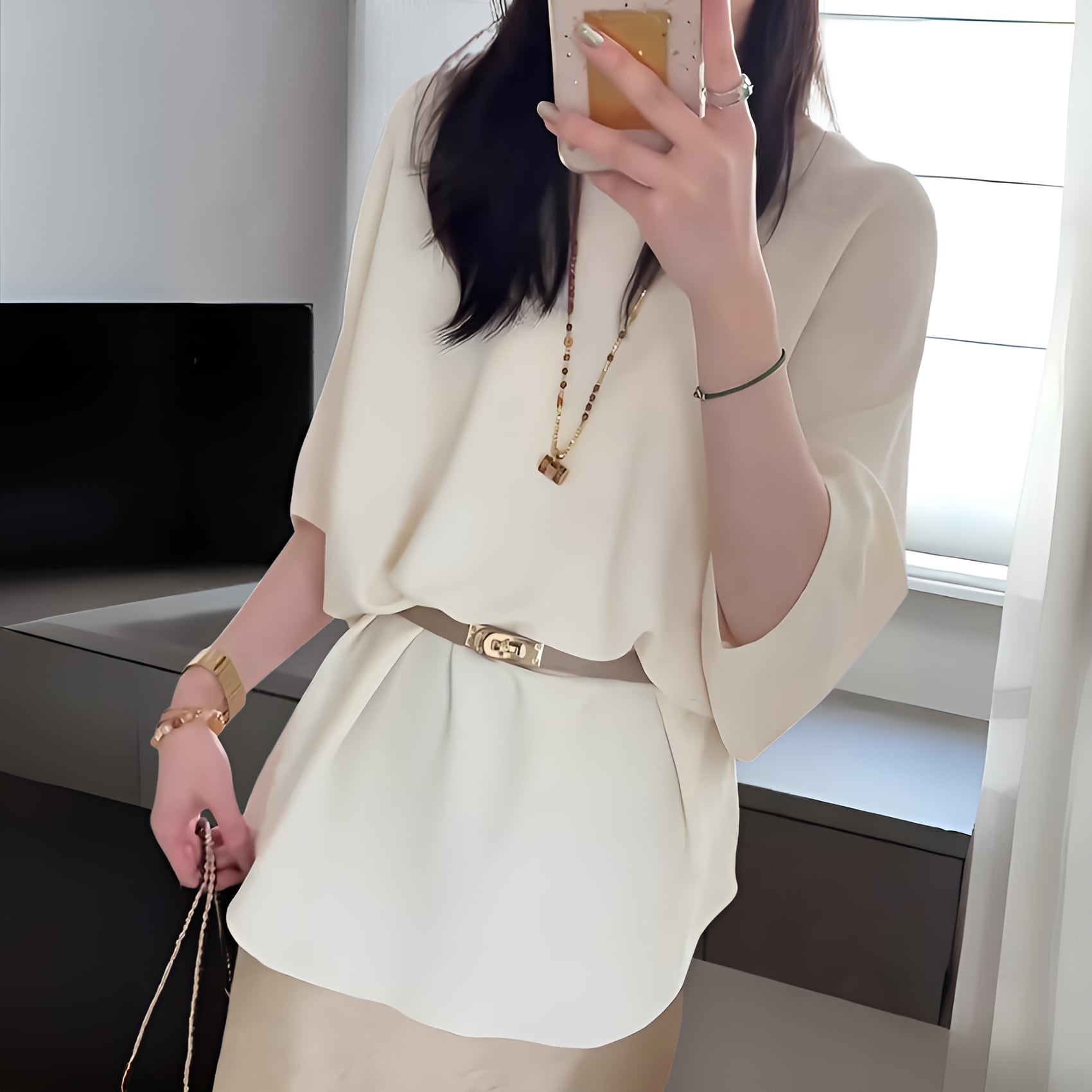 ラウンドネックドロップショルダープルオーバーは、快適さとスタイルを兼ね備えた魅力的な一着です。ホワイトカラーのゆったりとしたシルエットが、リラックス感を演出し、カジュアルな日常使いに最適です。柔らかな素材感は肌にも優しく、心地よい着心地を実現します。ドロップショルダーのデザインにより、肩ラインが自然に見え、さまざまなスタイルにマッチします。こちらのプルオーバーで、洗練されたシンプルさを楽しんでみてはいかがでしょうか。