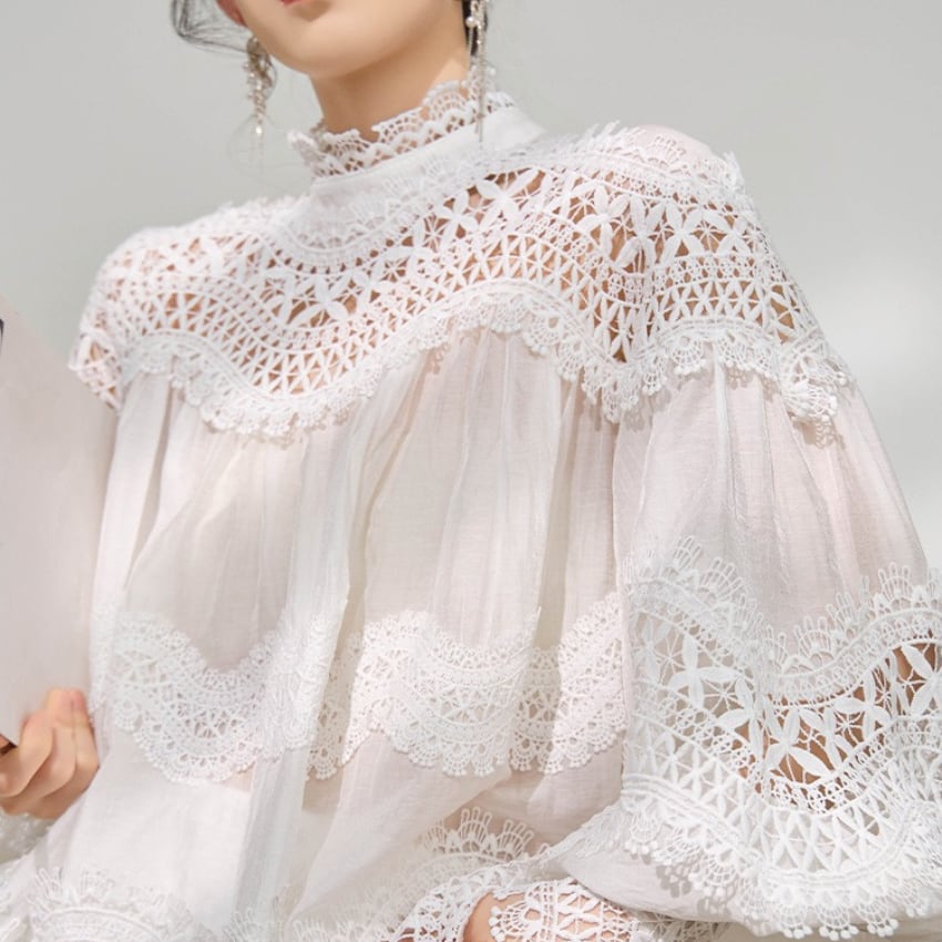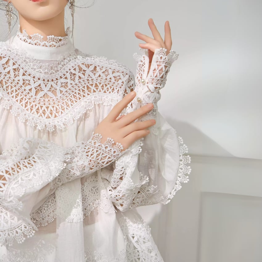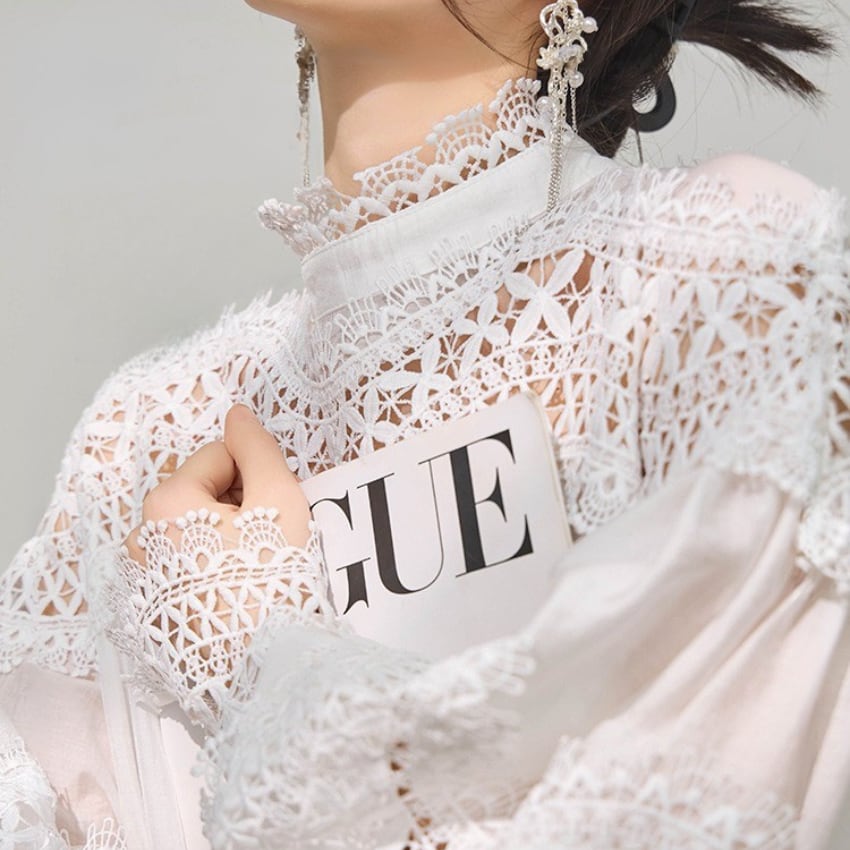透け感バルーンロングスリーブハイネックブラウス BM1185
