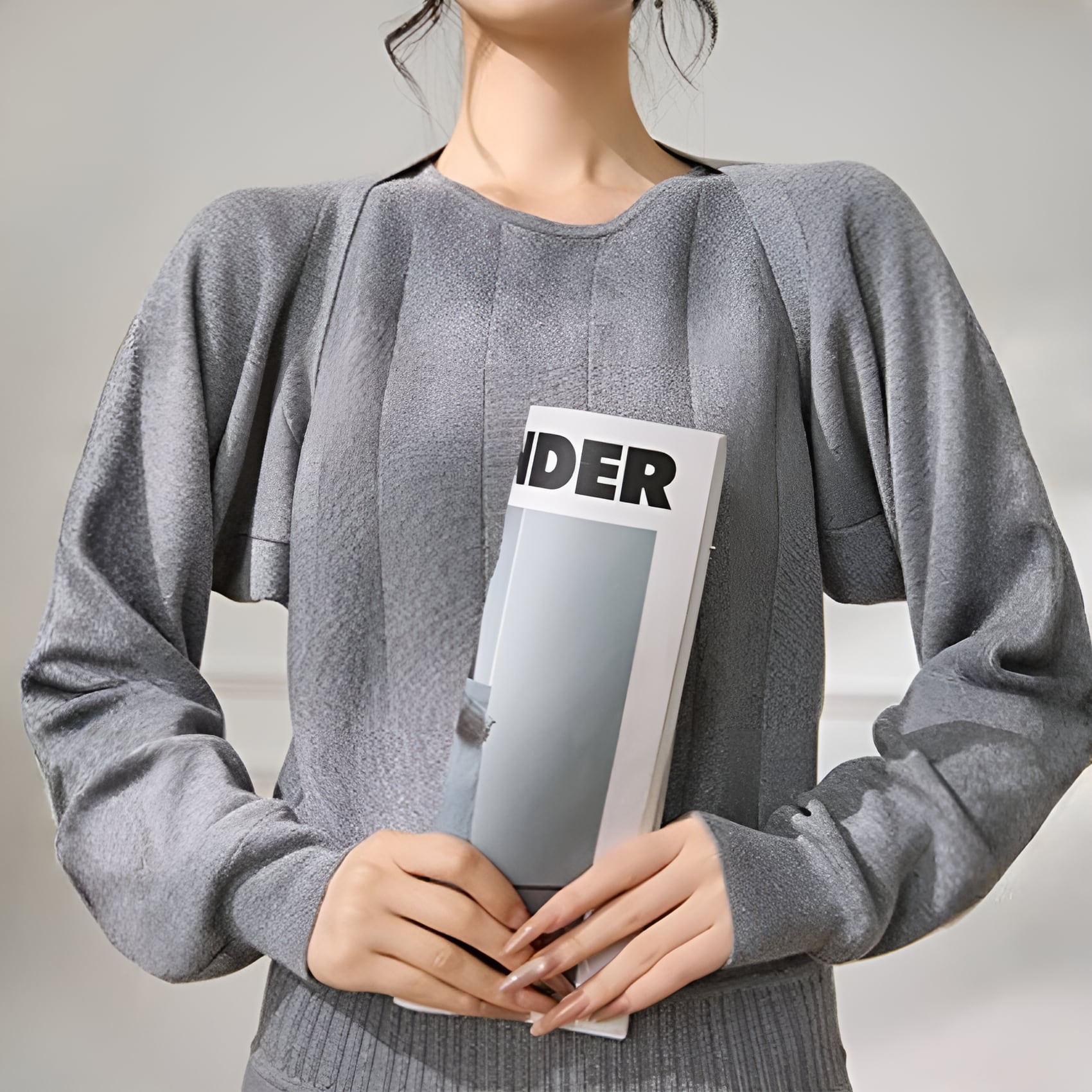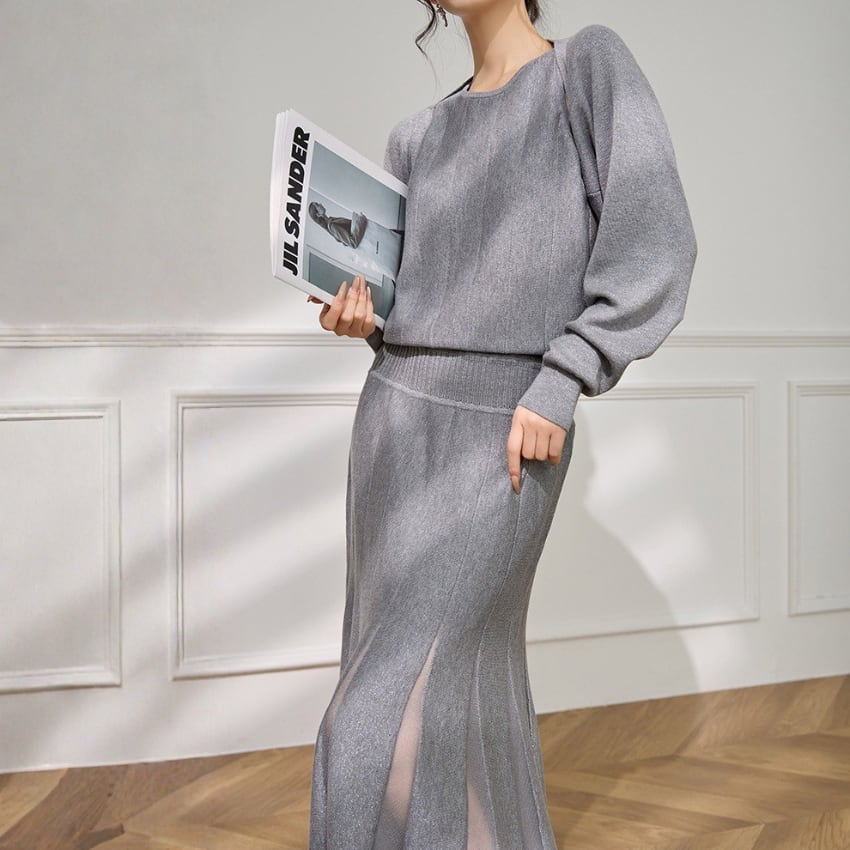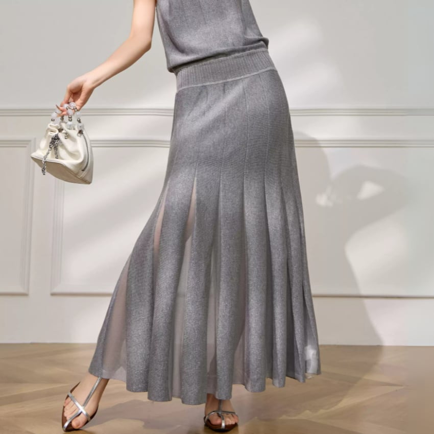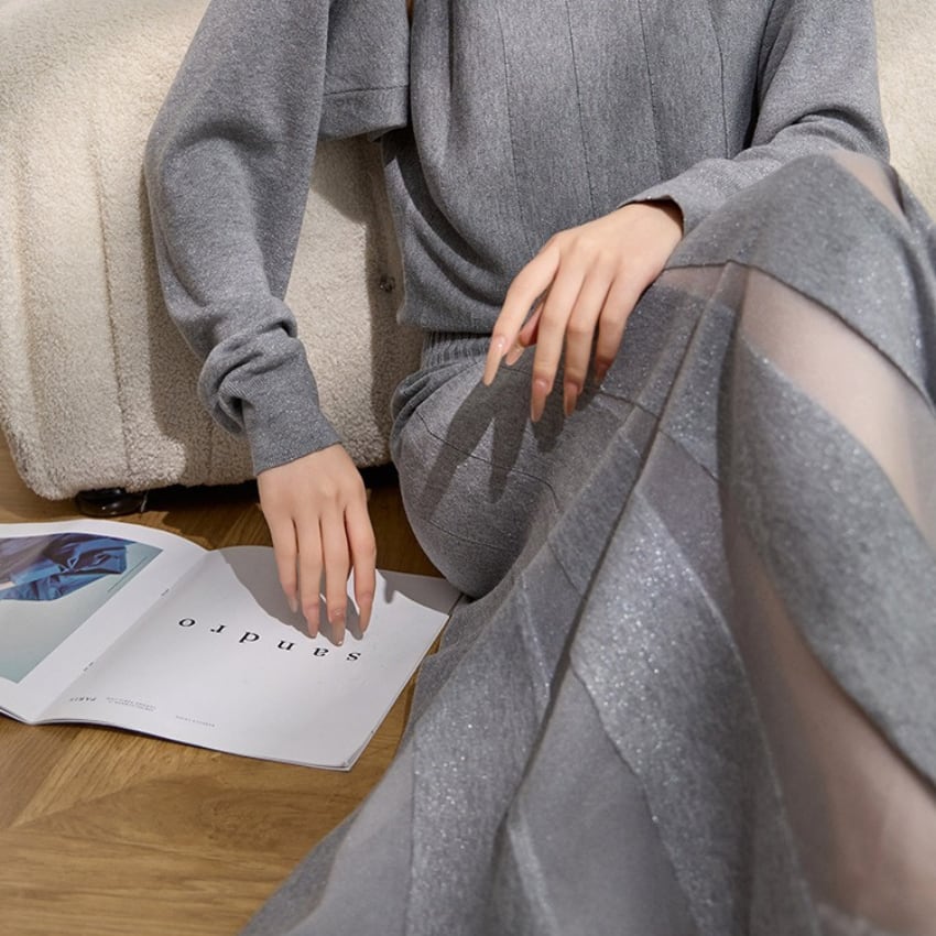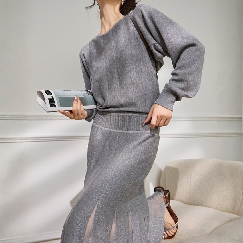 グレーカラーニットショール&ノースリーブプリーツドレスは、エレガントなデザインと流れるようなラインが魅力の一着です。柔らかなニットショールが顔回りをやさしく包み込み、ノースリーブのプリーツドレスが美しいシルエットを引き立てます。またノースリーブのプリーツドレス部分は、動くたびに華やかさを演出し、特別な日のコーディネートにもピッタリです。スタイリッシュでありながらもリラックスした雰囲気を演出できるこちらのアイテムを、ぜひあなたのワードローブに加えてみてはいかがでしょうか。