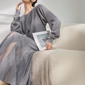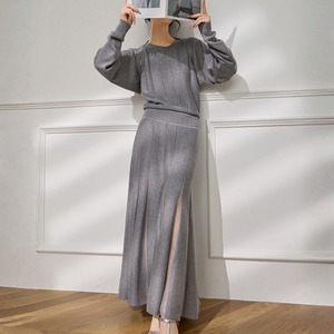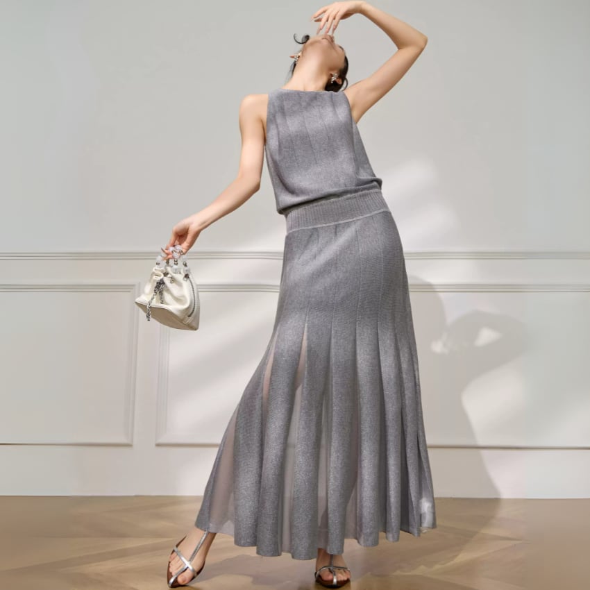 グレーカラーニットショール&ノースリーブプリーツドレス BM1186