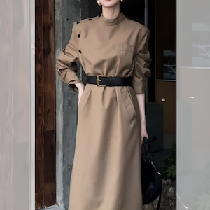 ラウンドネックトレンドスリットワンピースは、シンプルながらも印象的なデザインが特長の一着です。大人の女性にぴったりなクールなカーキとブラックの2色展開で、どちらも洗練された印象を与えます。ラウンドネックが顔周りをすっきりと見せ、スリットが入ったデザインが軽やかさを演出。カジュアルな日常使いから特別なお出かけシーンまで、一着で様々なスタイリングが楽しめます。こちらのワンピースを取り入れて、アクティブに過ごしながらも、スタイリッシュな印象を楽しんでみてはいかがでしょうか。