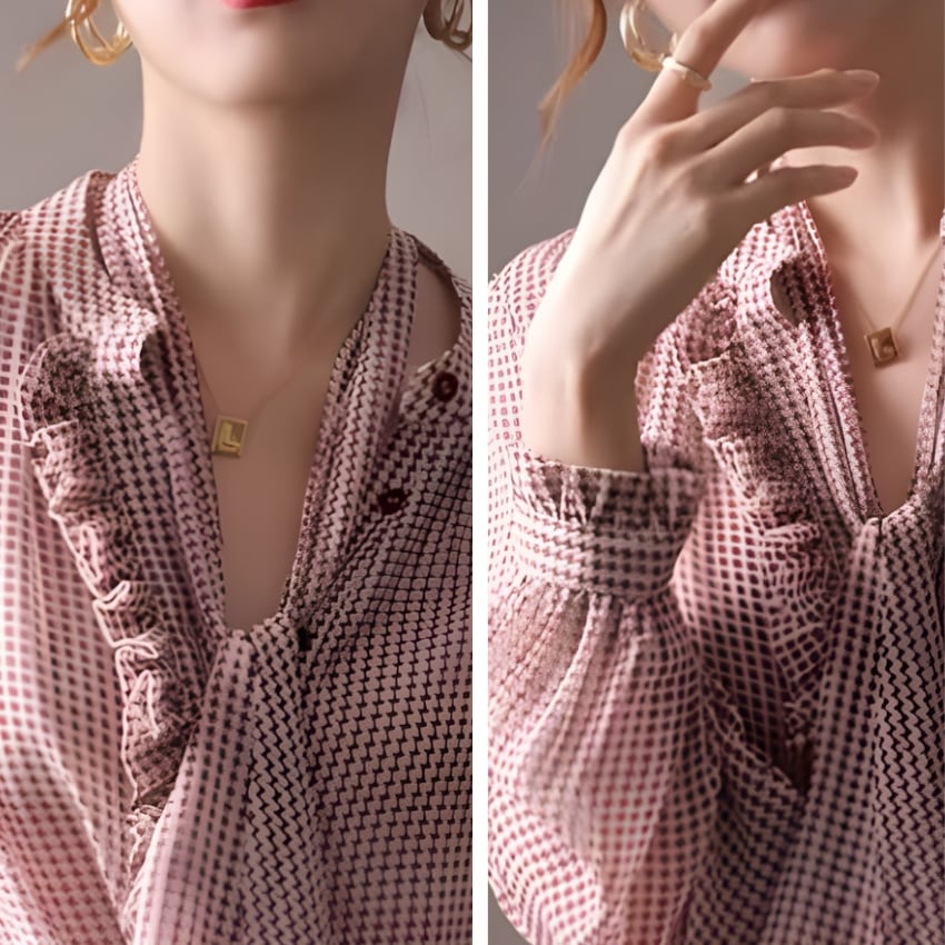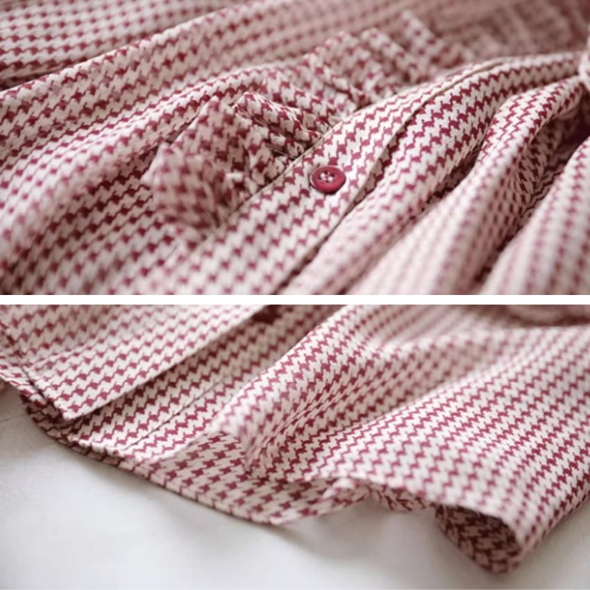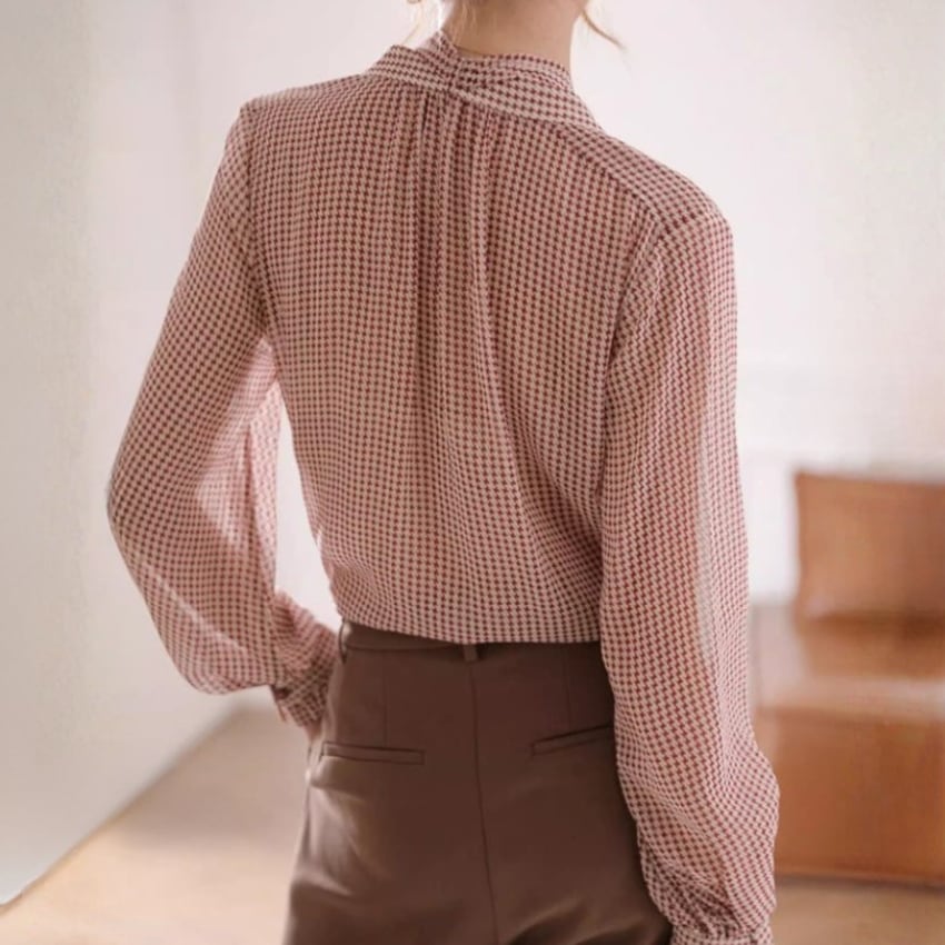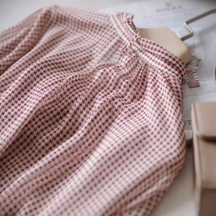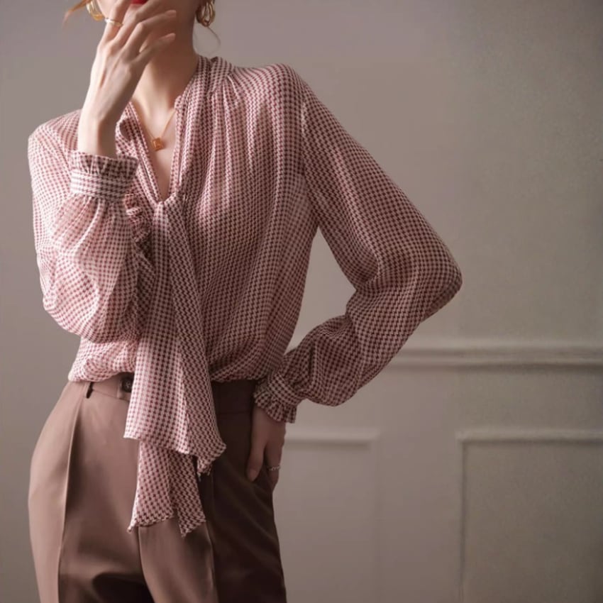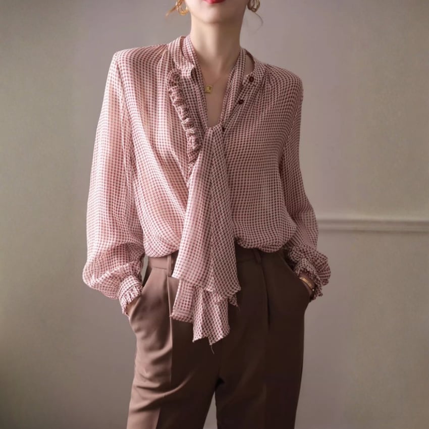 フレンチレトロスタイリッシュフリル千鳥格子ブラウス BM1204