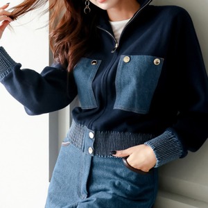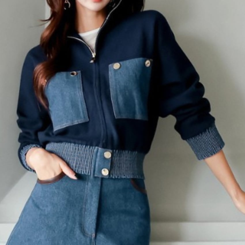 レトロシックジッパースタイルステッチデニムトップス BM1206