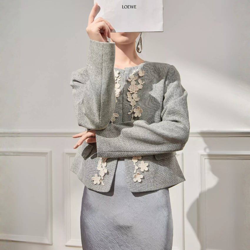 シャネル風フレンチグレージャケットは、シックなグレーが特徴のエレガントなジャケットです。3D刺繍が施されており、リッチなテクスチャーがより洗練された印象を与えます。フレンチスタイルのデザインが、どんなコーディネートにも上品さをプラスし、特別な日の装いにもぴったりなアイテムです。カジュアルなデニムと合わせたり、ドレススタイルの上に羽織ってみたりと、幅広いシーンで活躍します。ぜひこちらのジャケットで、フレンチスタイルの魅力を楽しんでみてはいかがでしょうか。