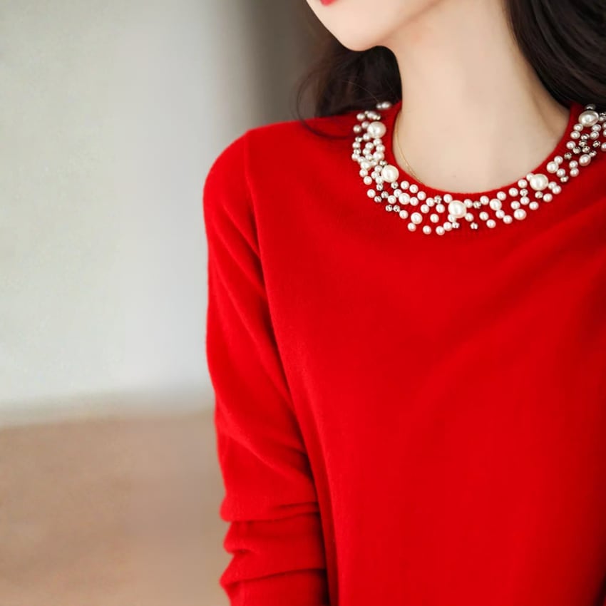 ラウンドネックダイヤモンドスタッズニットは、華やかさとカジュアルさを兼ね備えた魅力的なニットアイテムです。アプリコットとレッドの2色展開で、どちらも独特の輝きを持つダイヤモンドスタッズが施されており、着こなしに個性をプラスします。ラウンドネックのデザインが女性らしさを引き立て、シンプルながらも存在感のある一着です。カジュアルなお出かけからお友達との集まりまで、様々なシーンで活躍すること間違いなし!ぜひこちらのニットを取り入れて、スタイリッシュなコーディネートを楽しんでみてはいかがでしょうか。