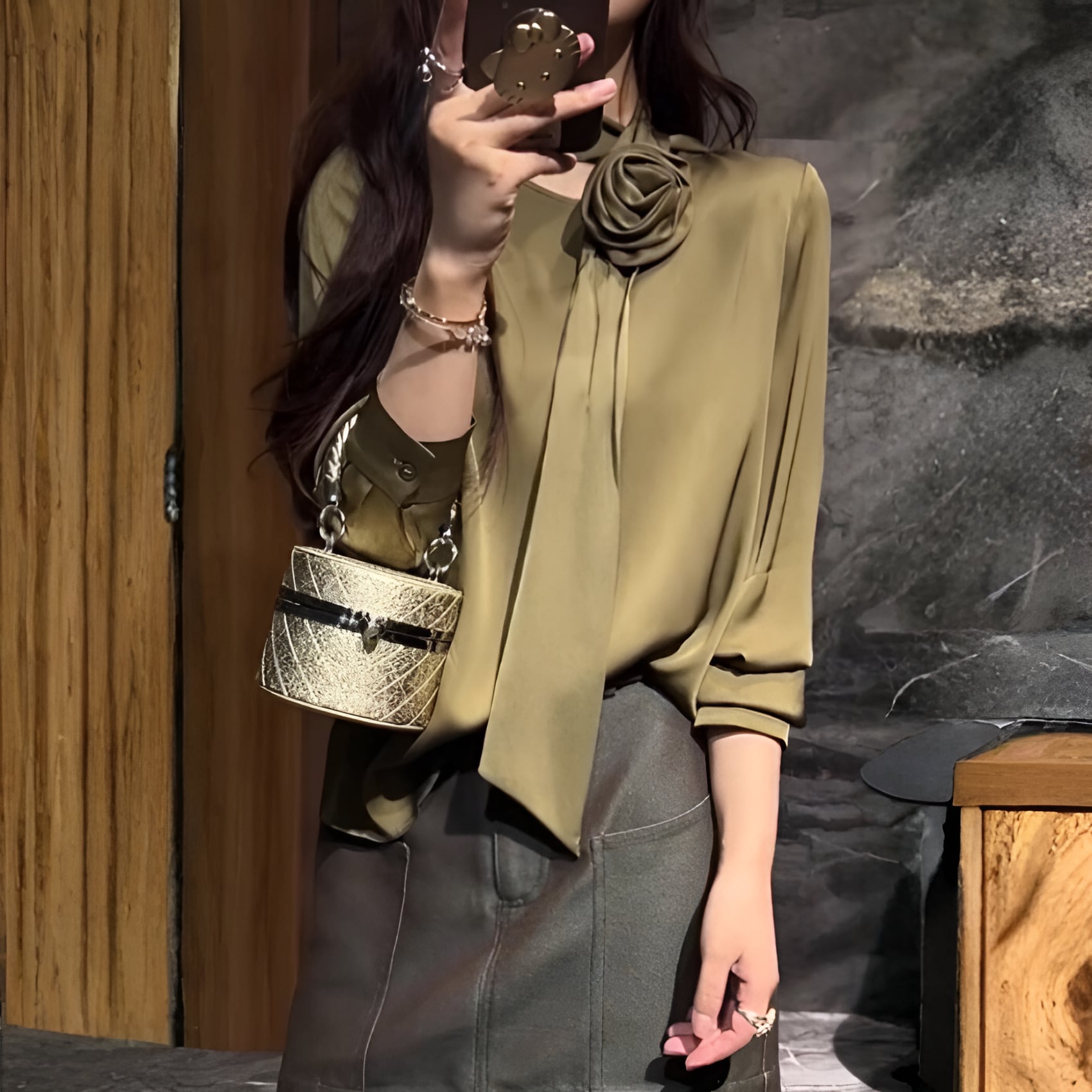 ローズコサージュリボンタイハイエンドブラウス BM1218