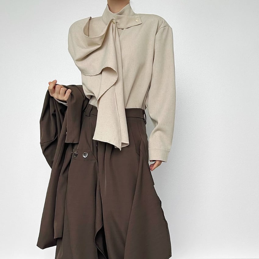 アシンメデザインニッチニュートラルスタイルシャツは、独特なデザインとシックなカラーバリエーションが魅力のアイテムです。グレーホワイト、ブラック、ベージュの3色展開で、洗練されたニュートラルな印象を与えます。このシャツは、ビジネスシーンからカジュアルなお出かけまで、多岐にわたるスタイルに対応できる優れたアイテムです。アシンメトリーなデザインが新鮮さをプラスし、毎日のコーディネートを一層引き立ててくれることでしょう。ぜひ、こちらのシャツであなたの魅力を表現してみてはいかがでしょうか。