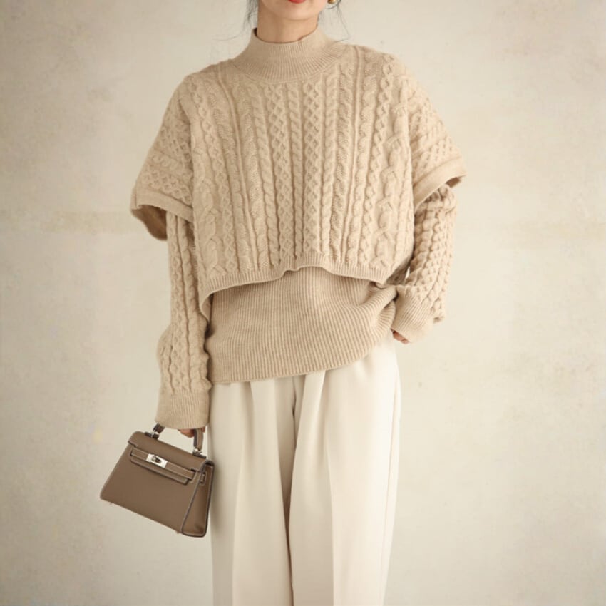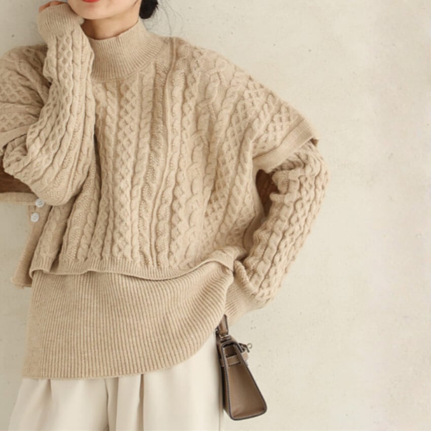 2025年秋冬ケーブルレイヤードニット2点セット BM1235