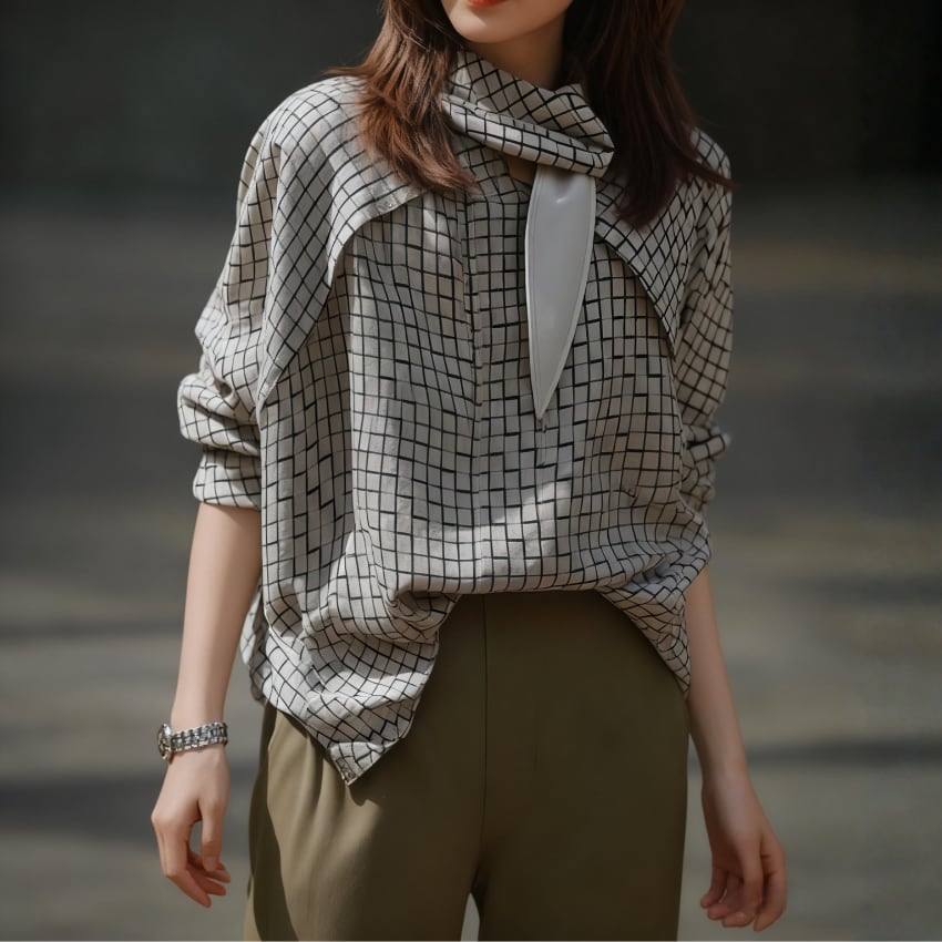 チェック柄 スタンドカラー レトロデザインブラウスは、クラシックでありながらトレンドを押さえた魅力溢れる一着です。チェック柄とスタンドカラーが組み合わさり、ヴィンテージ感を演出しつつ、現代的なスタイルも取り入れたデザインが特徴です。どんなボトムスともマッチし、カジュアルからフォーマルまで多様なシーンで活躍できるアイテムです。1枚で簡単におしゃれを演出できるため、デイリーユースにも最適です。