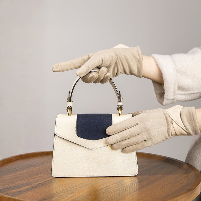 2025年新作フェイクスエードタッチスクリーン対応手袋は、冬にぴったりなスタイリッシュなアイテムです。柔らかなフェイクスエード素材を使用しており、手触りが良く、温かさを保ちながらもおしゃれな印象を与えます。多彩なカラーバリエーション(ブラウン、ベージュ、グレー、キャメル、ブラック)から選べるので、コーディネートに合わせて自由自在に楽しむことができます。タッチスクリーン対応なので、スマホ操作も快適に行えるのが嬉しいポイントです。デイリー使いはもちろん、特別な日のお出かけにもおすすめの逸品です。