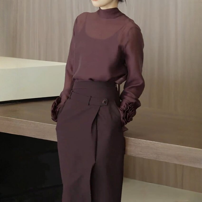 ミディデザインスカートは、ダークパープルのシックでスタイリッシュな一着です。そのエレガントなデザインは、あらゆるシーンで活躍し、あなたの個性を引き立てます。上品なミディ丈は、動くたびに優雅な印象を与え、洗練されたスタイルを演出します。オフィスシーンからカジュアルなディナーまで、幅広くご利用いただけるこちらのスカートで、特別なコーディネートを楽しんでみてはいかがでしょうか。