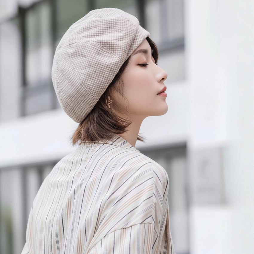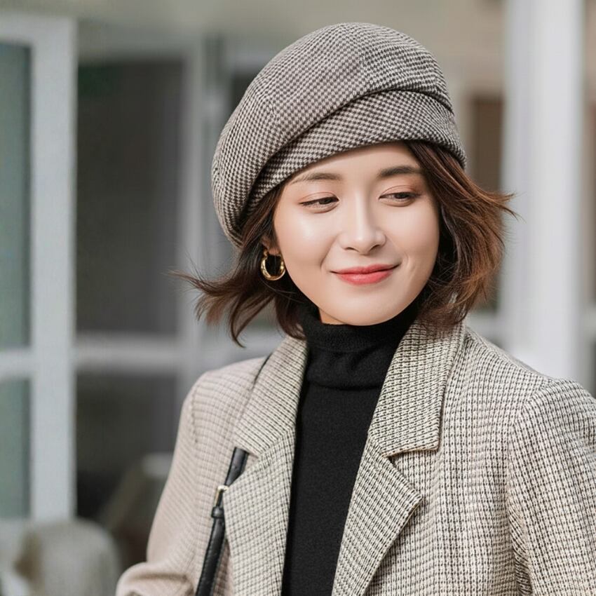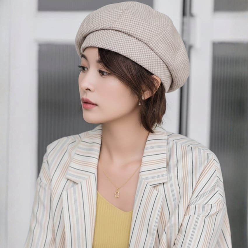 チェック柄ベレー帽は、柔らかな素材感と心地よいフィット感が魅力の一品です。シンプルながらもオシャレなポイントを押さえたデザインで、日常使いにぴったりのアイテムです。ブラック、オフホワイト、ブラウン、ピンク、カーキの5色展開で、どんなスタイルにも自然に溶け込みます。多彩なカラーでコーディネートの幅を広げながら、おしゃれを楽しむことができます。特別な日の装いはもちろん、普段使いにも最適なこちらのベレー帽で、自分らしいスタイルを演出してみませんか。