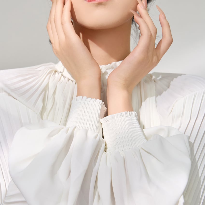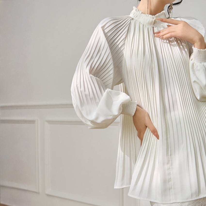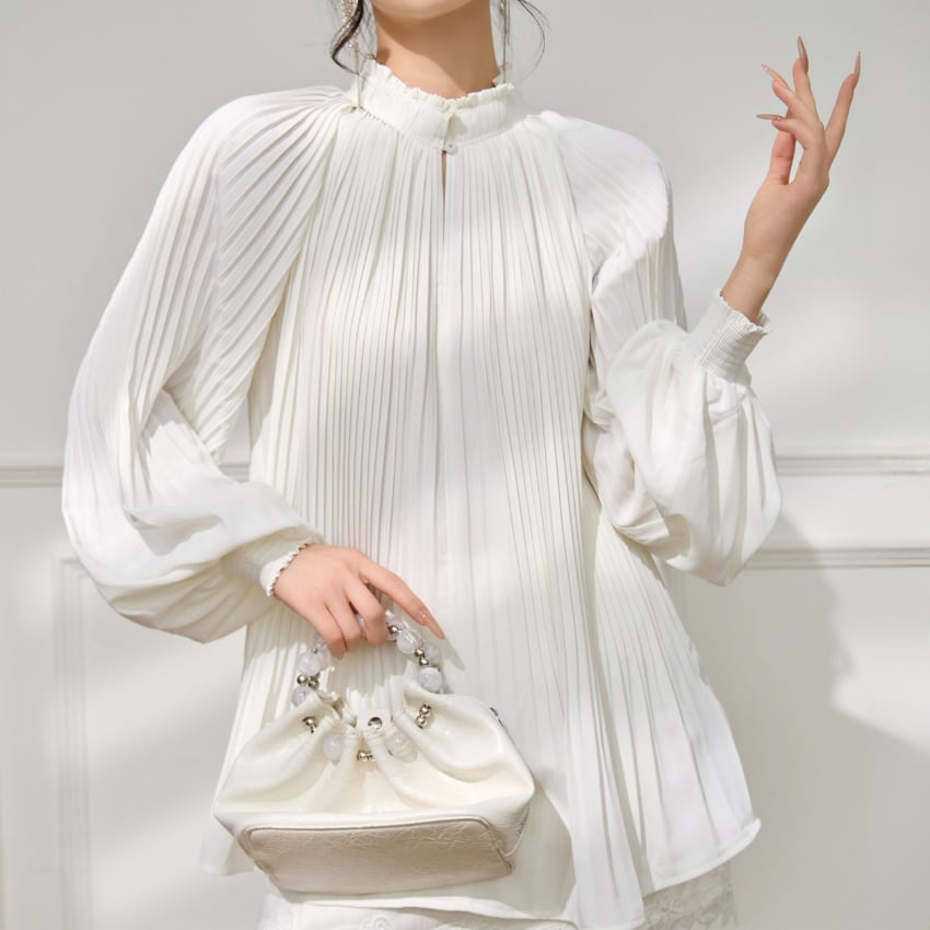 フレンチスタイル スタンドカラープリーツシャツ BM1261