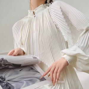 フレンチスタイル スタンドカラープリーツシャツは、エレガントでありながらレトロな魅力を兼ね備えた素敵なアイテムです。ホワイトカラーが際立ち、どんなスタイルにも華やかさを添えることで、あなたのファッションに新たな息吹を与えます。特に、スタンドカラーとプリーツデザインが女性らしさを引き立て、シックな装いを演出します。特別な日のお出かけはもちろん、普段使いにもぴったりなこちらのシャツで、自分らしいスタイルを楽しんでみてはいかがでしょうか。