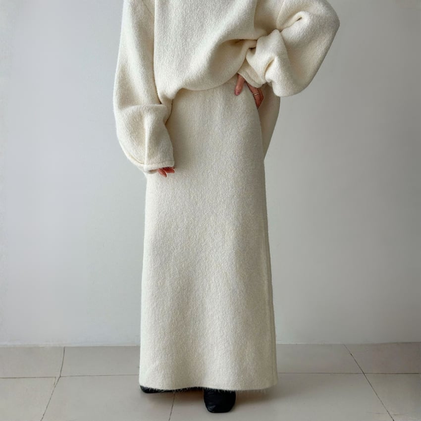 リラックスフィットセーター&ニットスカートセットアップは、贅沢な着心地とスタイリッシュなデザインを兼ね備えた必見アイテムです。オフホワイトとライトグレーの柔らかなカラーリングが、あなたの日常を爽やかに彩ります。セーターはリラックスフィットで、自由に動ける快適さがあり、スカートはエレガントな雰囲気を演出。普段使いから特別なお出かけまで、幅広いシーンで活躍するこちらのセットアップで、洗練されたスタイルを楽しんでみてはいかがでしょうか。