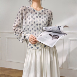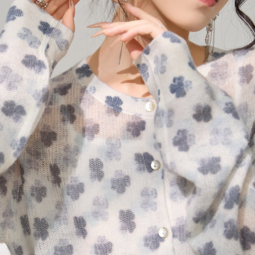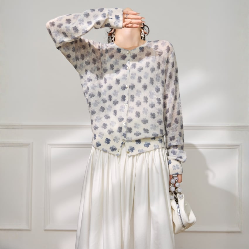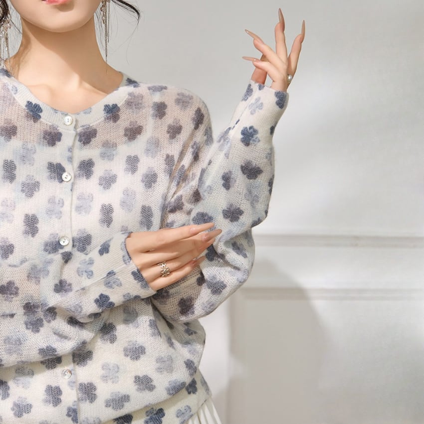 プリントニットフィットカーディガンは、愛らしい四葉のクローバーがデザインされたカジュアルでスタイリッシュなアイテムです。心温まる印象を与えるプリントが魅力的で、日常のコーディネートに優れたアクセントをプラスします。柔らかなニット素材で身体にフィットするため、リラックスしながらも洗練されたスタイルを楽しむことができます。こちらのカーディガンをワードローブに加え、毎日のコーディネートに新たな風を吹き込んでみるのはいかがでしょうか。