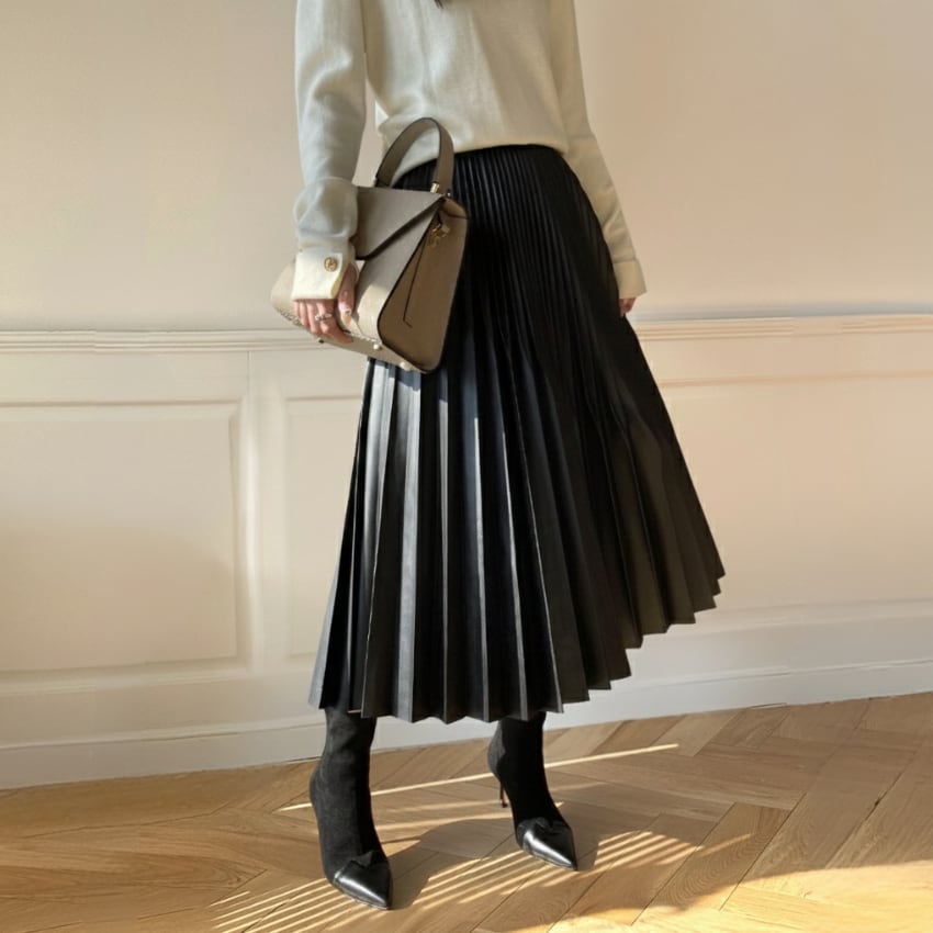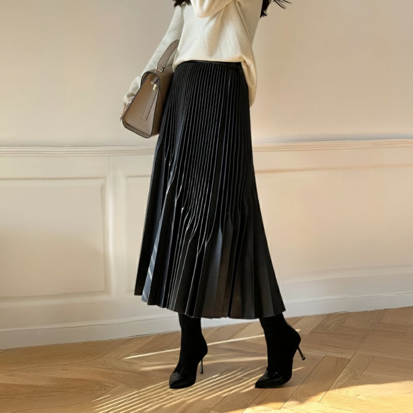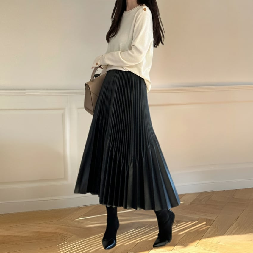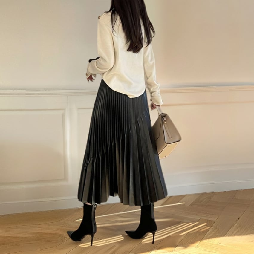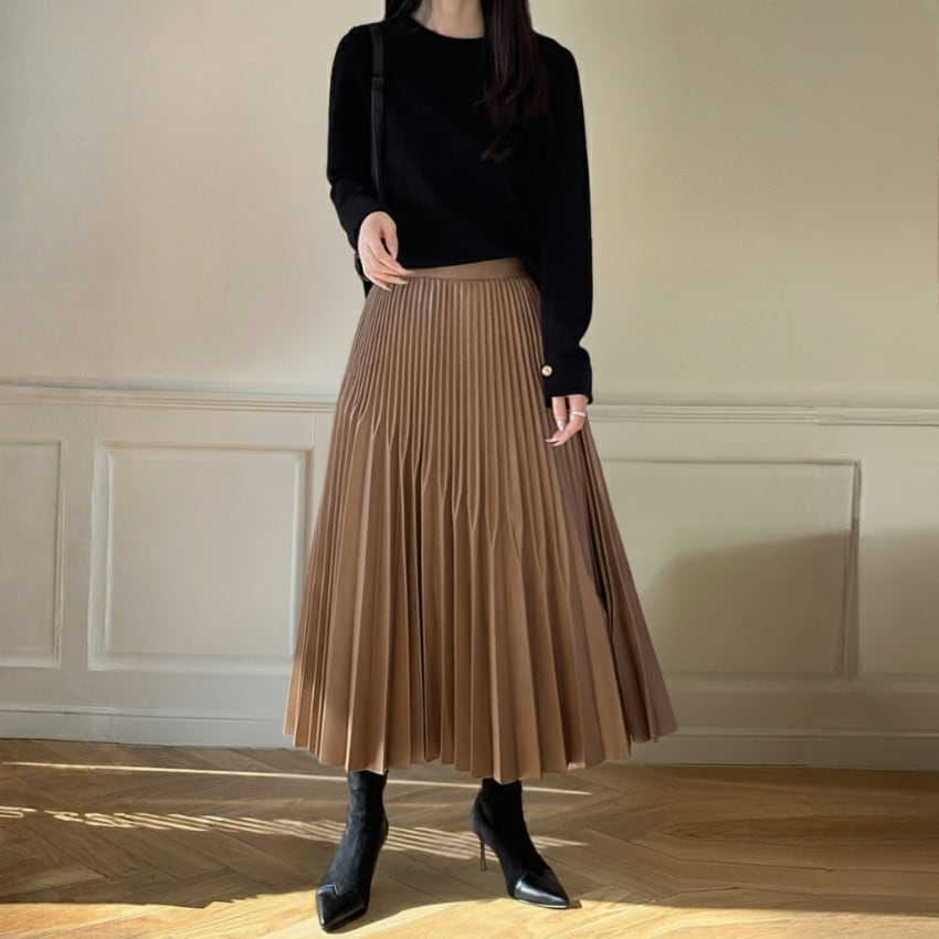 ハイウエストAライン不規則プリーツロングスカート BM1278