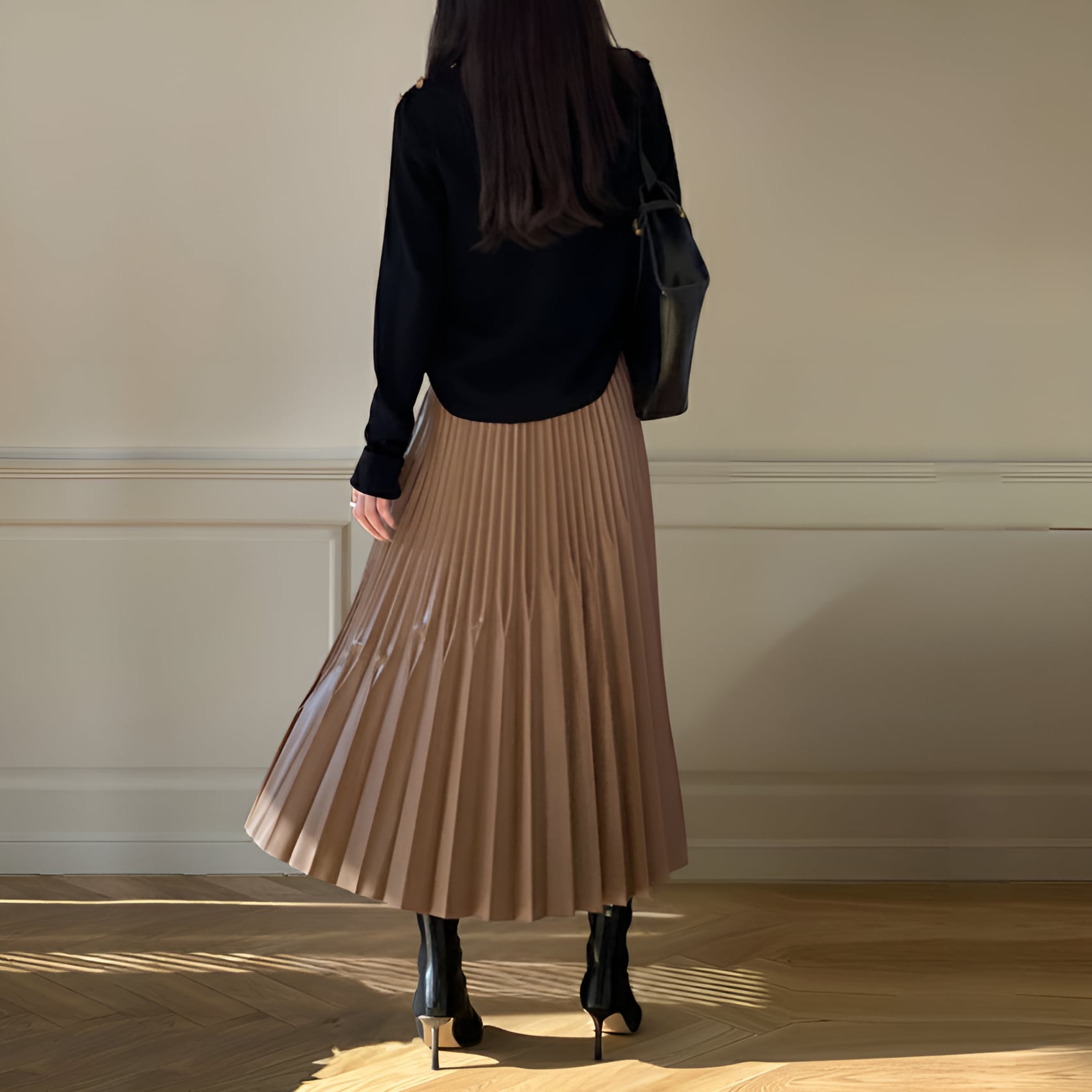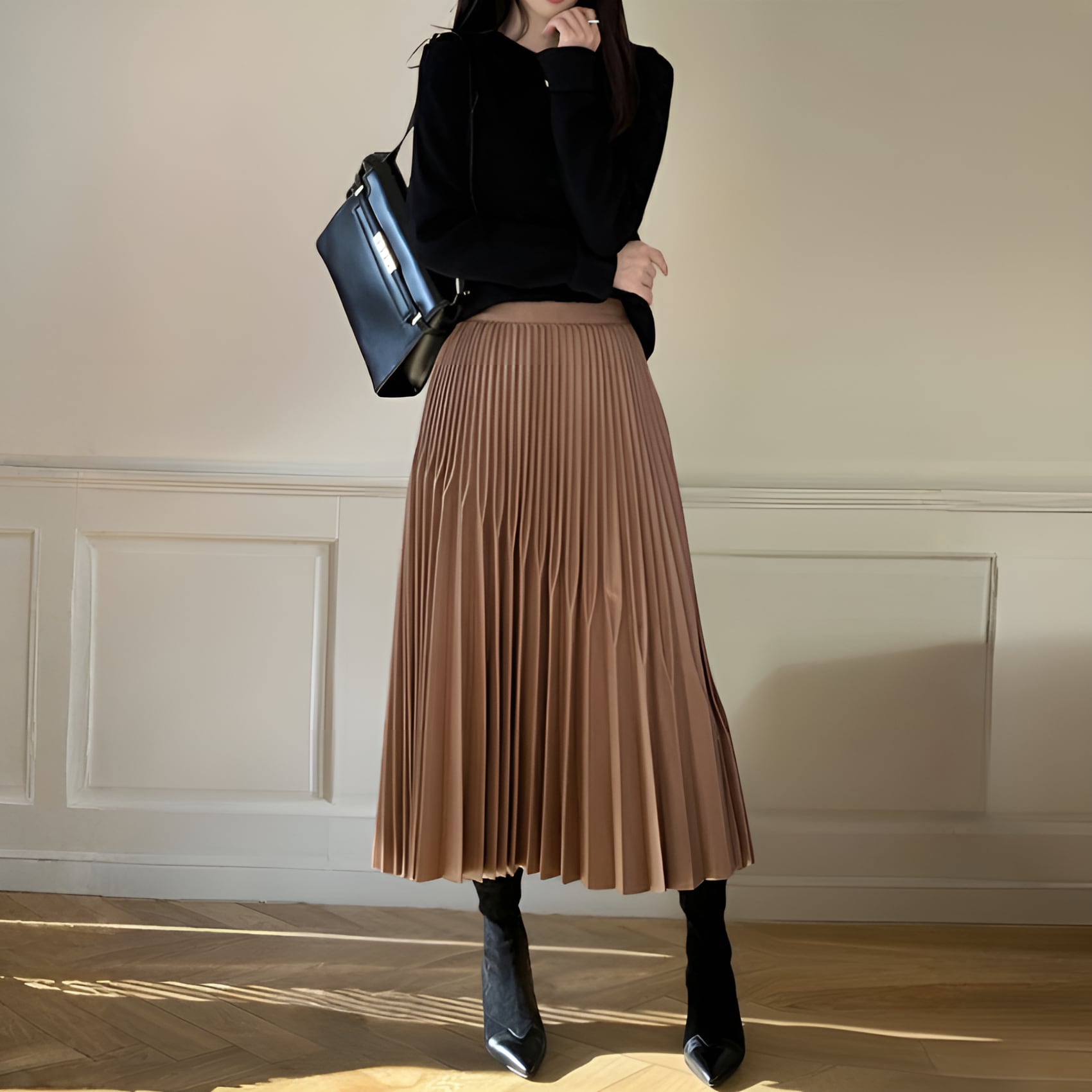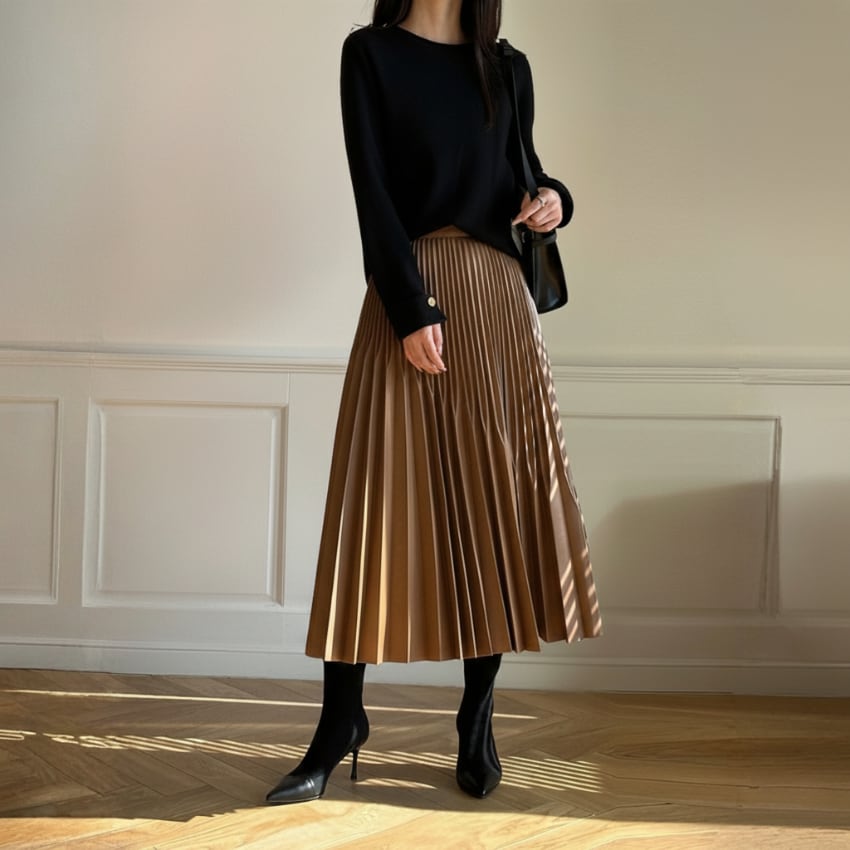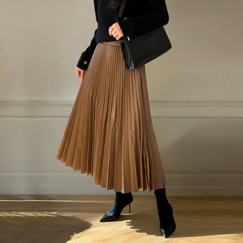 ハイウエストAライン不規則プリーツロングスカートは、大人の女性にぴったりの洗練されたデザインが魅力の一枚です。ブラウンとブラックのシックな2色展開で、おしゃれを楽しむすべてのシーンにマッチします。ハイウエストなシルエットが脚長効果を演出し、動くたびに優雅に揺れるプリーツが、エレガントな雰囲気を醸し出します。カジュアルな日常使いから特別なイベントまで、幅広く活躍するアイテムです。ぜひこちらのスカートをワードローブに加えて、あなたのスタイルを一層魅力的に引き立ててみてはいかがでしょうか。