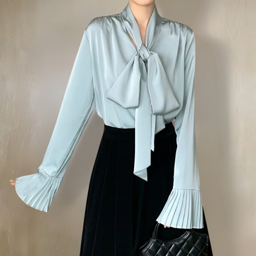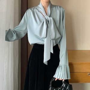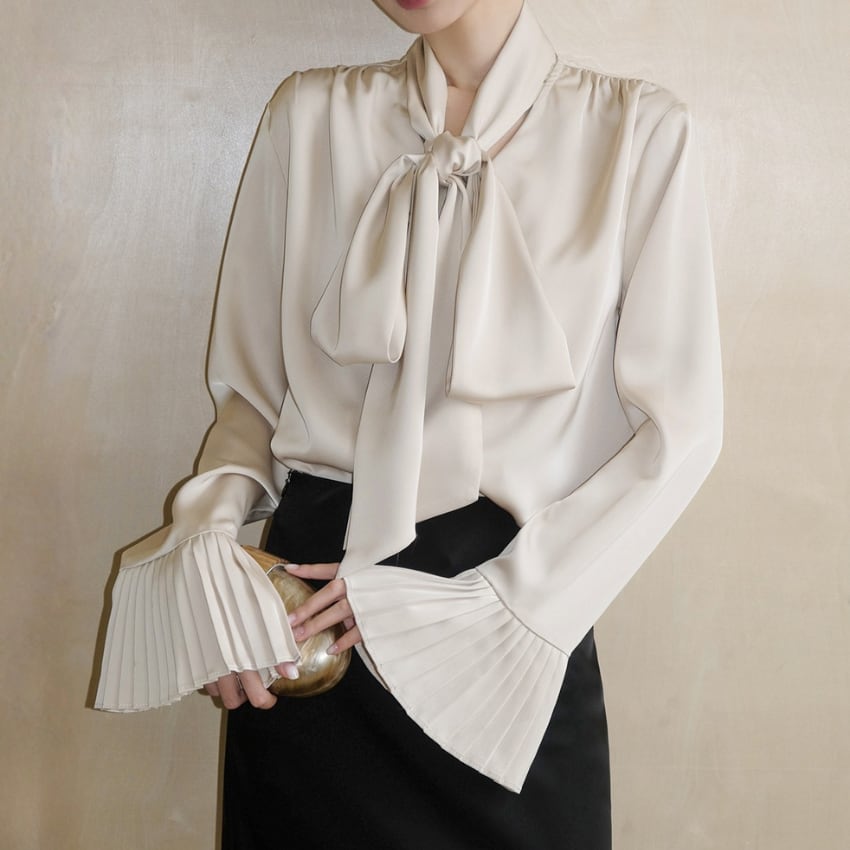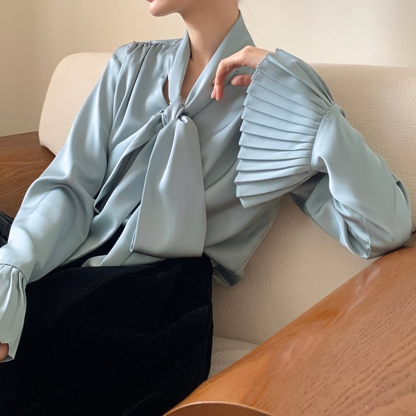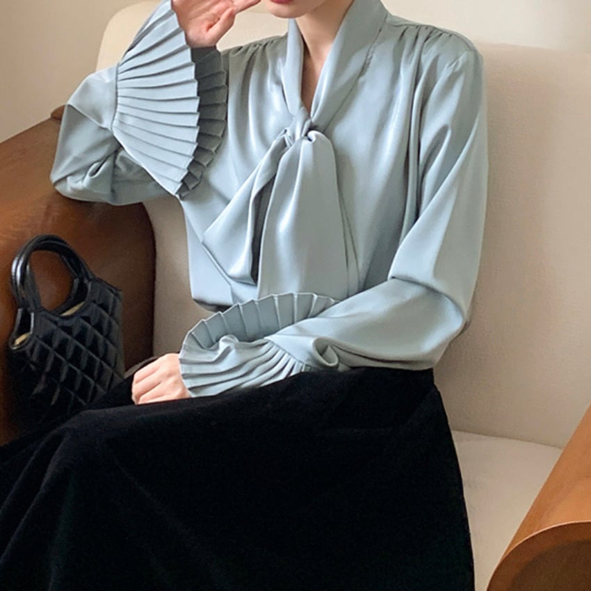 フレンチエレガンスアコーディオンスリーブリボンブラウス BM1279