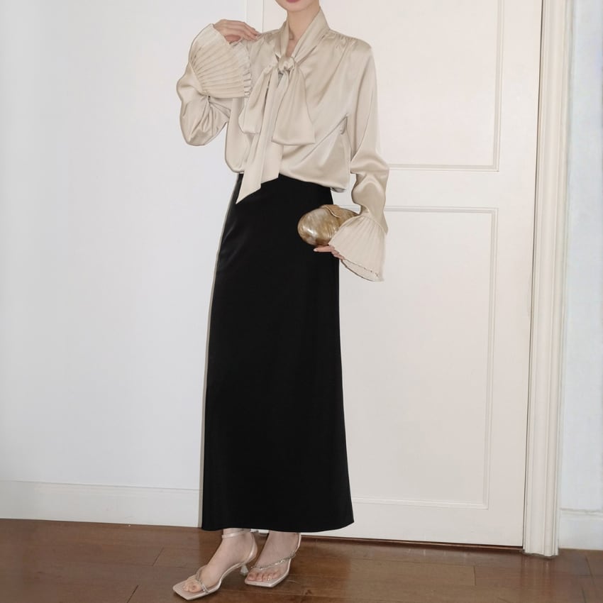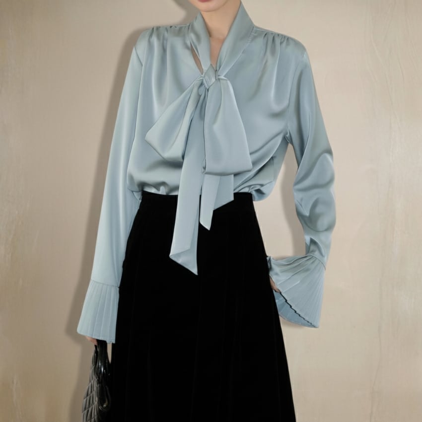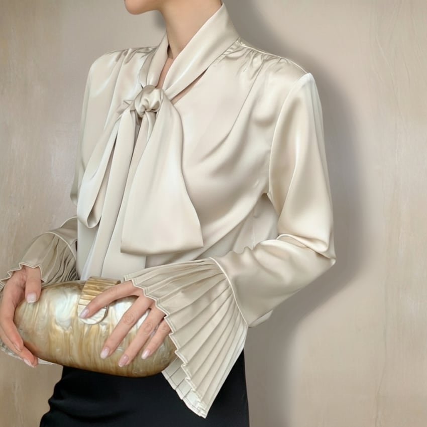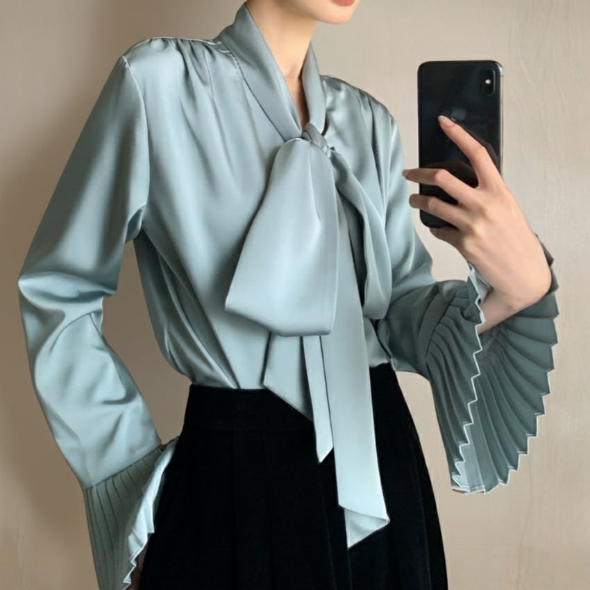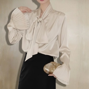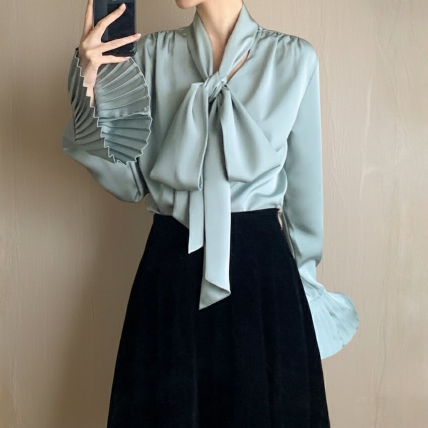 フレンチエレガンスアコーディオンスリーブリボンブラウス BM1279