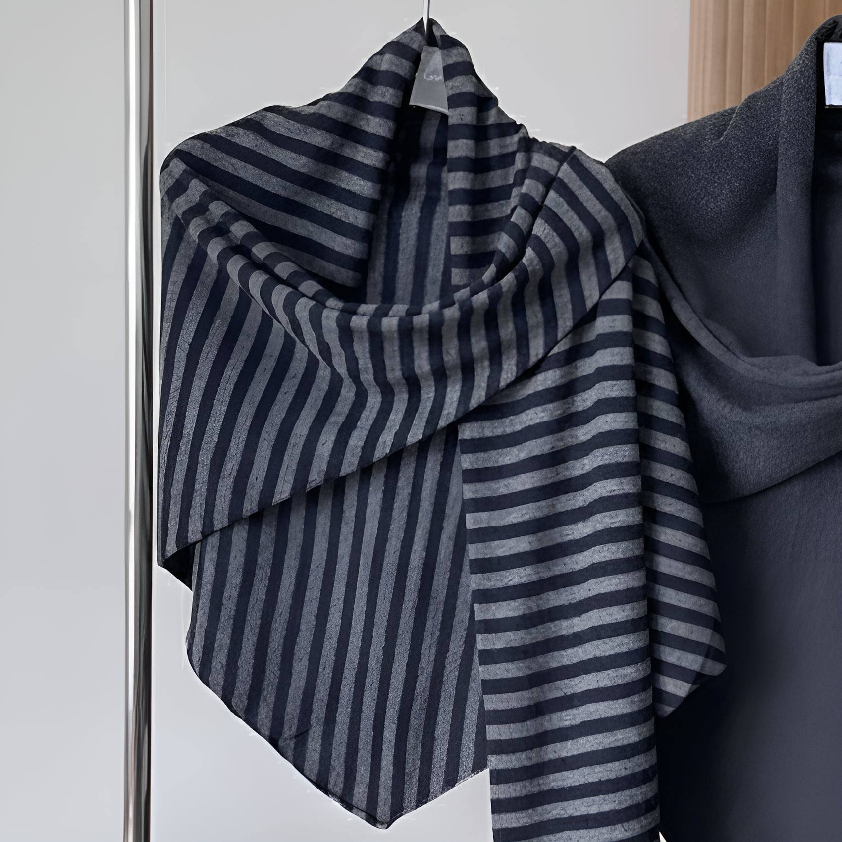 ヴィンテージ スニットスカーフは、クラシックな魅力を含むグレーとブラックのストライプ柄がおしゃれな一品です。温かみのあるスニット素材が、寒い季節にもぴったりなアイテムとして、あなたのコーディネートを格上げします。どんなスタイルにも合わせやすく、カジュアルからビジネスシーンまで幅広く活躍できるスカーフです。こちらのスカーフをワードローブに加えて、新たなスタイルの引き立て役にしてみてはいかがでしょうか。