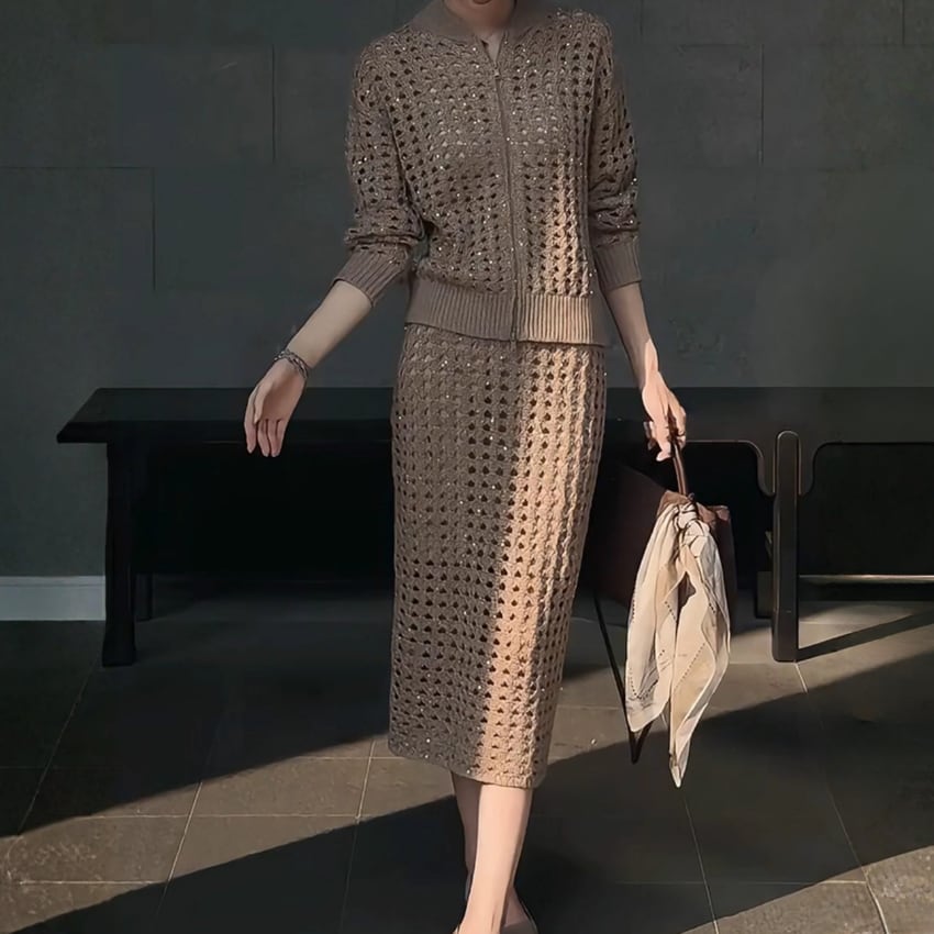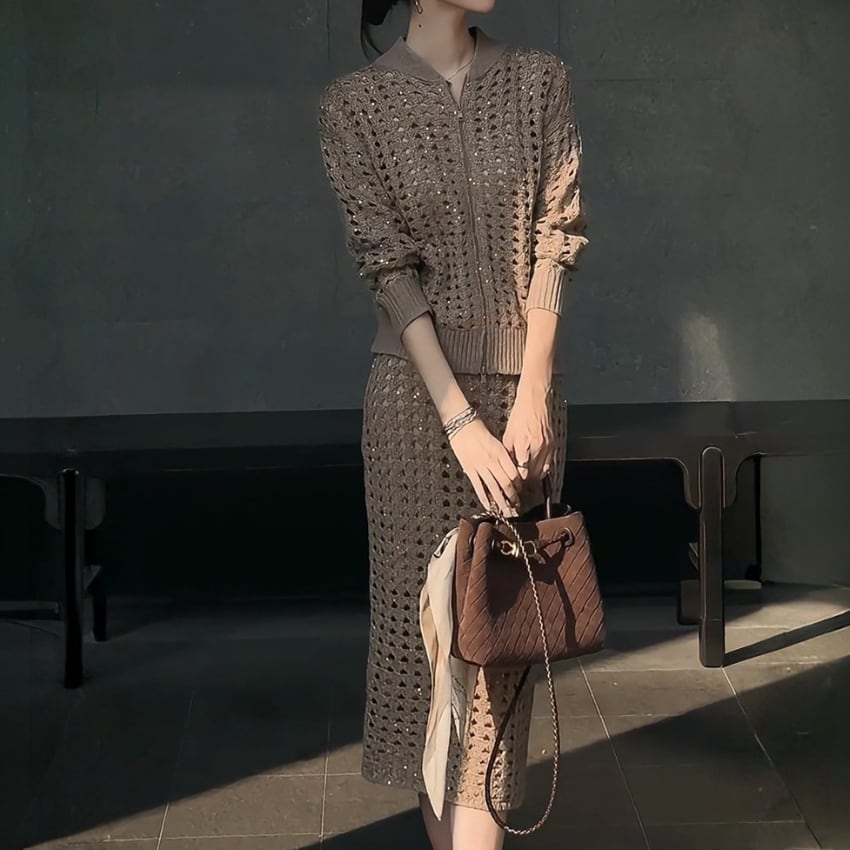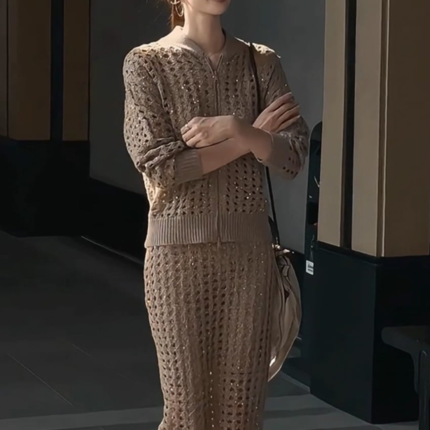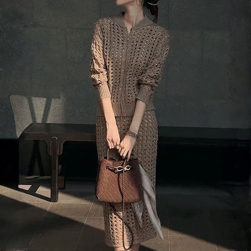 フレンチレトロソーシャライト中空アウトスーツは、独特のデザインと温かみのあるブラウンカラーが魅力のアイテムです。その中空の構造により、快適さと軽やかさを実現し、普段使いからお出かけまで幅広く活躍できる一枚となっています。スタイリッシュなシルエットは、どんなスタイルにもマッチし、おしゃれに決まること間違いなしです。ぜひ、こちらのアウトスーツをワードローブに加えて、新しいスタイルを楽しんでみてはいかがでしょうか。