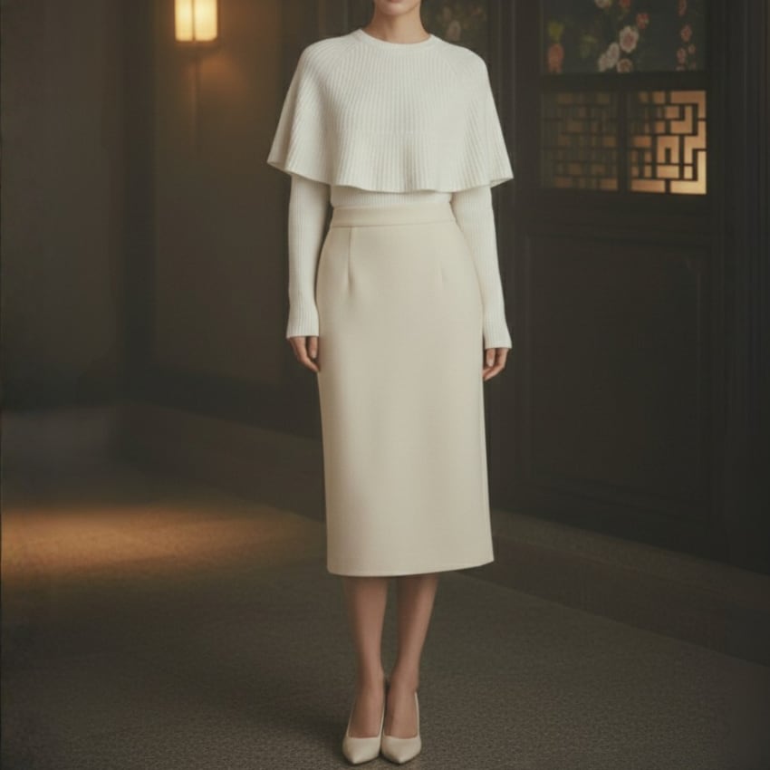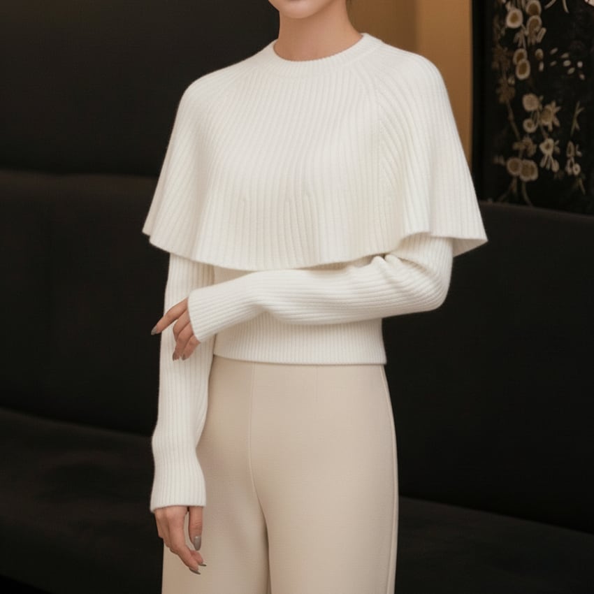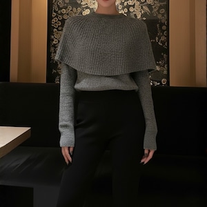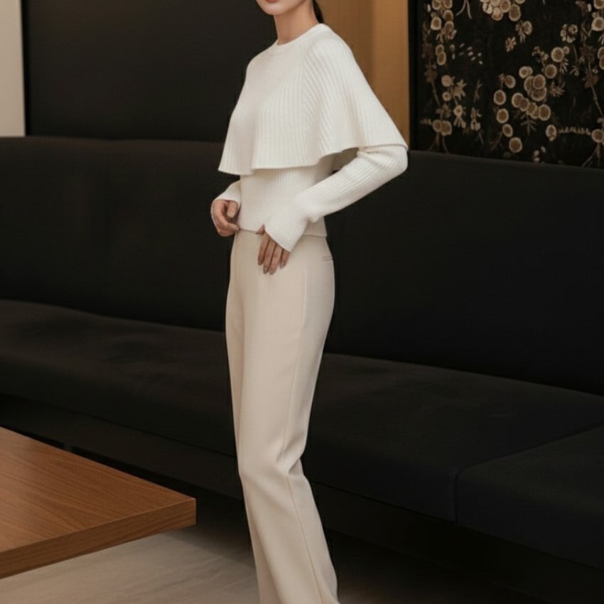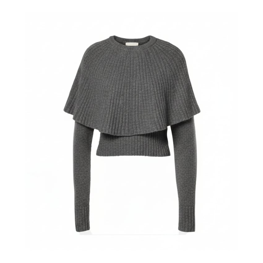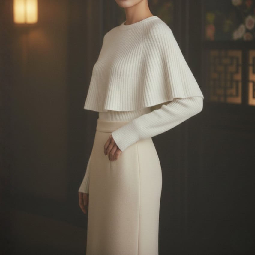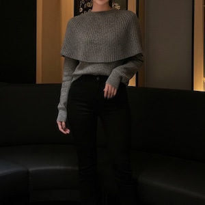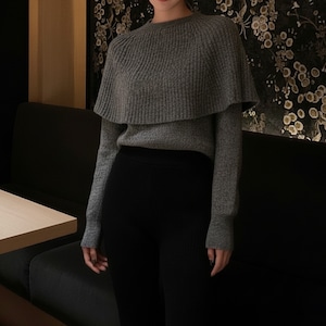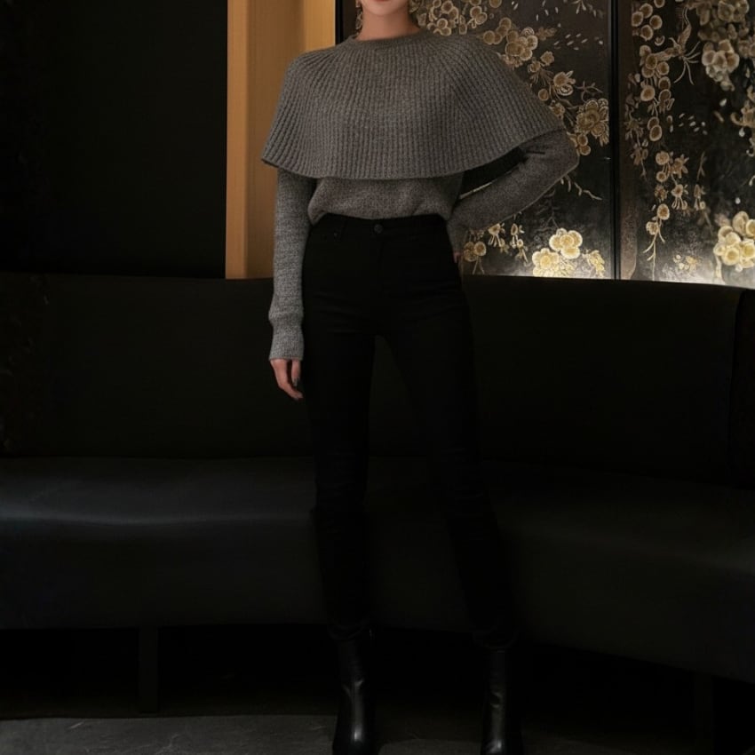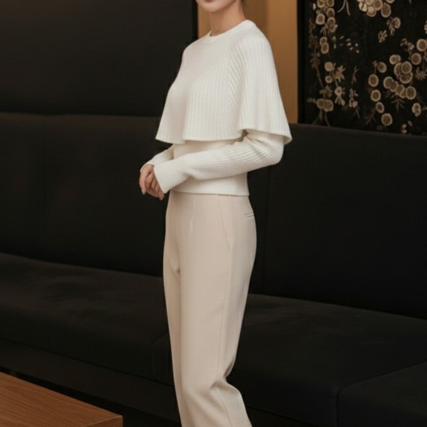 エレガントケープニットトップスは、優雅さが漂うオフホワイトとグレーの2色展開で、どんなコーディネートにも華やかさをプラスします。流れるようなケープデザインが肩回りを優しく包み込み、動く度に美しいシルエットを演出します。カジュアルな日常使いから、特別な日のスタイルまで幅広くご活用いただける一枚です。ぜひ、こちらのトップスをワードローブに加えて、洗練されたスタイルを楽しんでみてはいかがでしょうか。