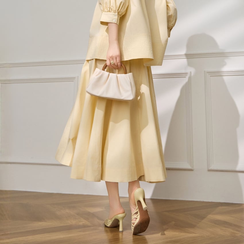 フレンチデザインAラインフレアスカートは、鮮やかなイエローが際立つ美しいアイテムです。Aラインのシルエットが優雅なフレアを描き、女性らしさを引き立ててくれます。軽やかな素材感が魅力で、動きやすさを兼ね備えているため、日常のカジュアルシーンから特別なお出かけまで、幅広く活躍する一枚です。ぜひ、こちらのスカートをあなたのワードローブに加えて、新たなスタイルを楽しんでみてはいかがでしょうか。