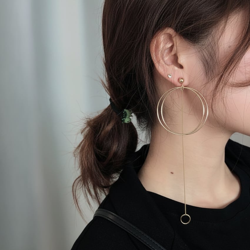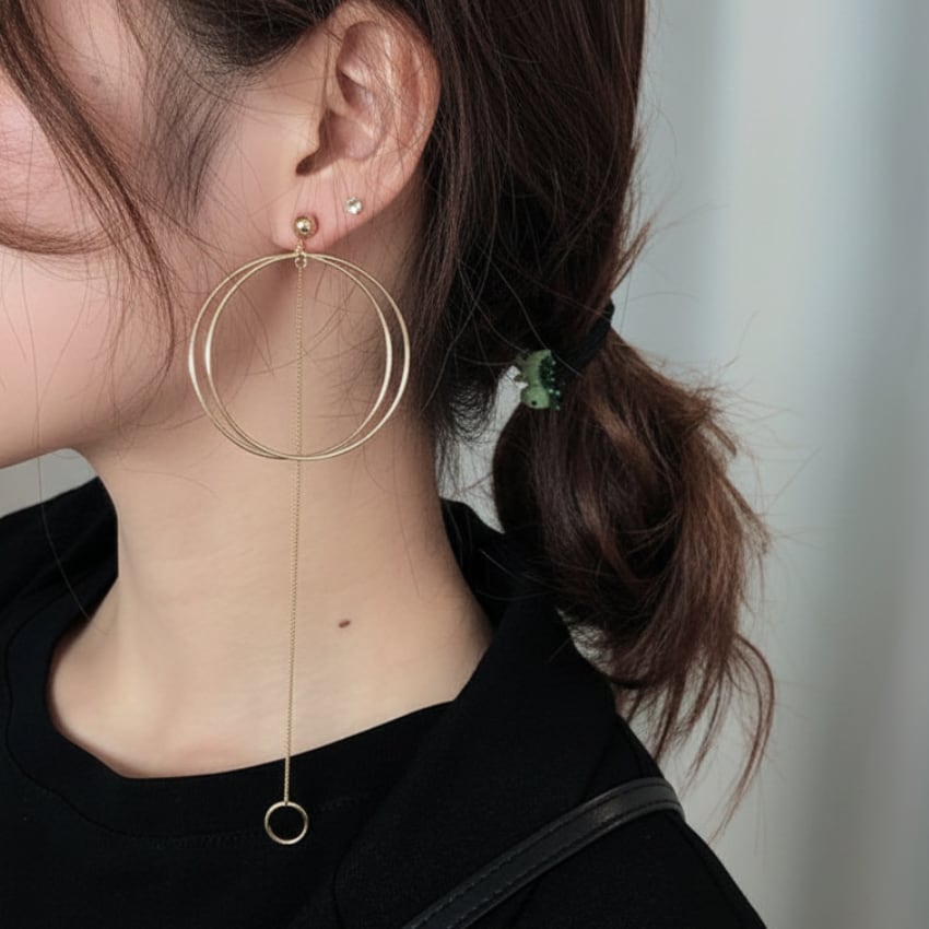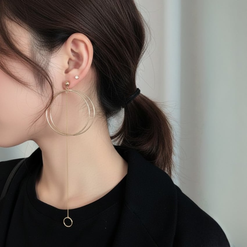 ニッチデザイン非対称サークルピアスは、スタイリッシュでエレガントなアイテムです。独特な非対称デザインが目を引き、シックなゴールドの色合いが洗練された印象を与えます。長めの丈は顔の形を美しく強調し、どんなスタイルにもマッチするため、日常のおしゃれから特別な日まで幅広く活躍できます。ぜひ、こちらのピアスをあなたのスタイルに取り入れて、ファッションを楽しんでみてはいかがでしょうか。