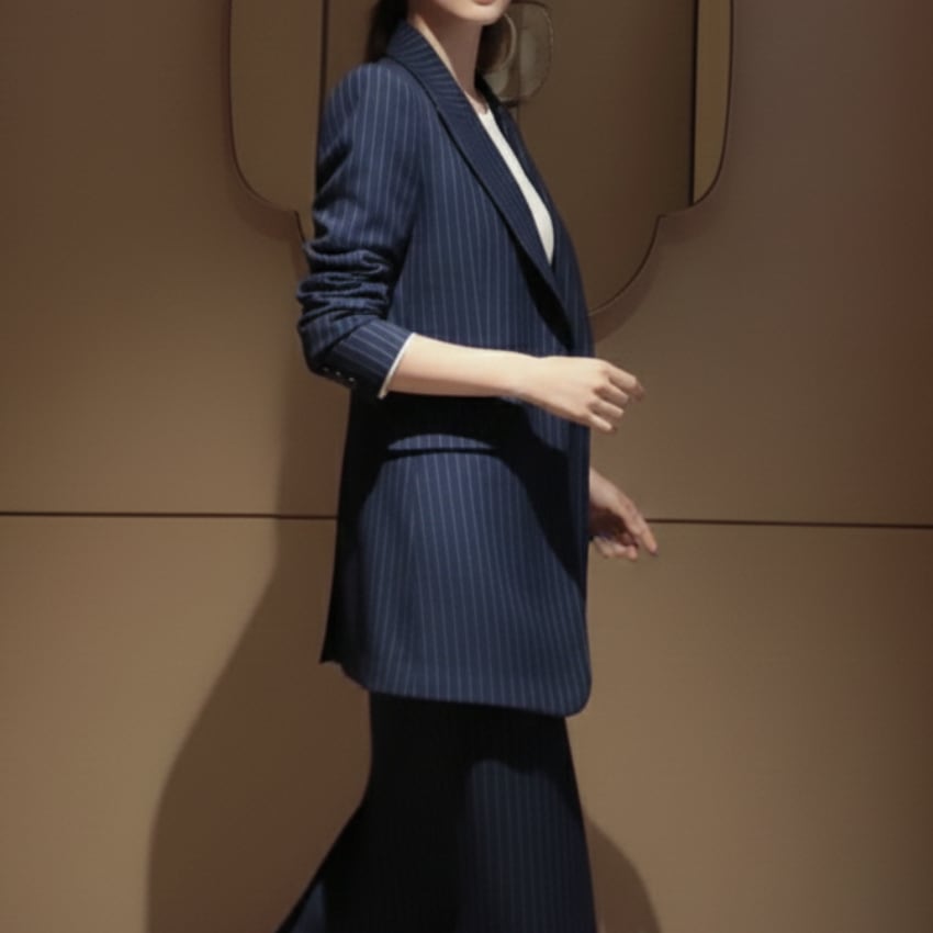 エレガントアーバンスーツ は、落ち着いた色合いと美しいストライプが特徴の洗練されたアイテムです。ビジネスシーンやフォーマルなイベントにぴったりな印象を与え、どんなシーンでも自信を持って臨むことができます。エレガントなシルエットと柔らかな素材感が、着心地の良さを実現しており、快適さを大切にしたい方にもおすすめです。ぜひ、こちらのスーツをあなたのワードローブに取り入れて、魅力的なスタイルを楽しんでみてはいかがでしょうか。
