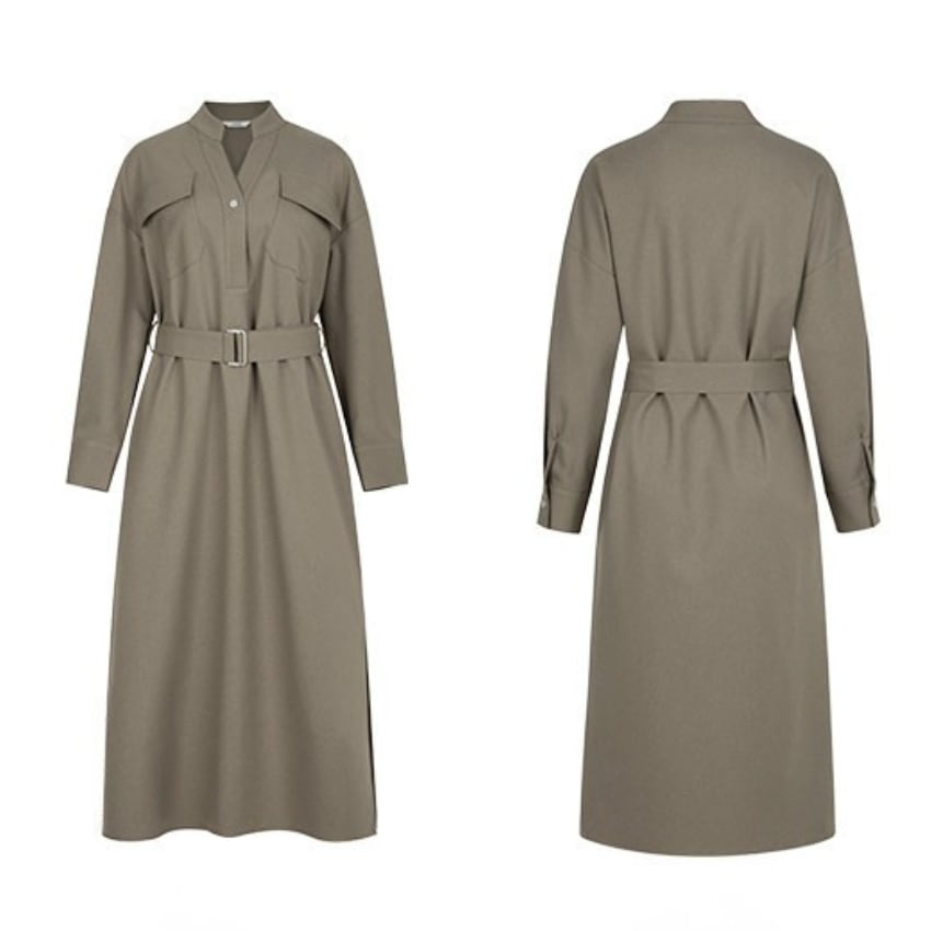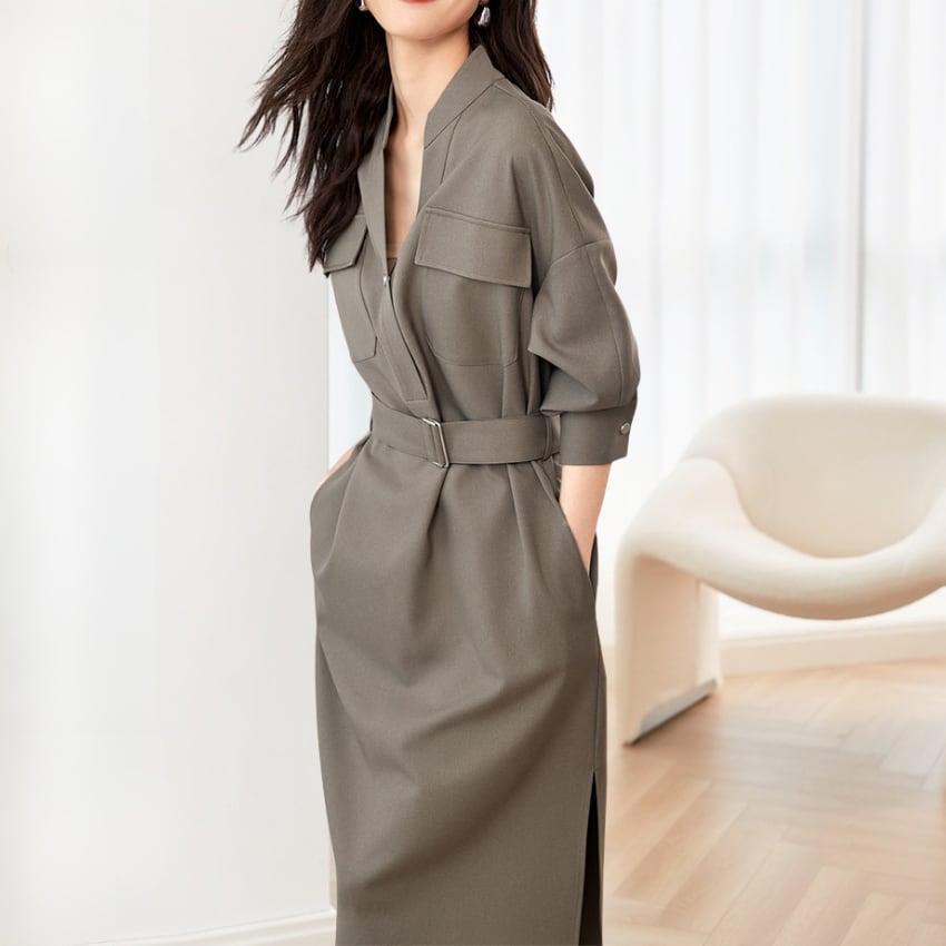 新スタイルVネックウエストスリミングシャツドレス BM1303
