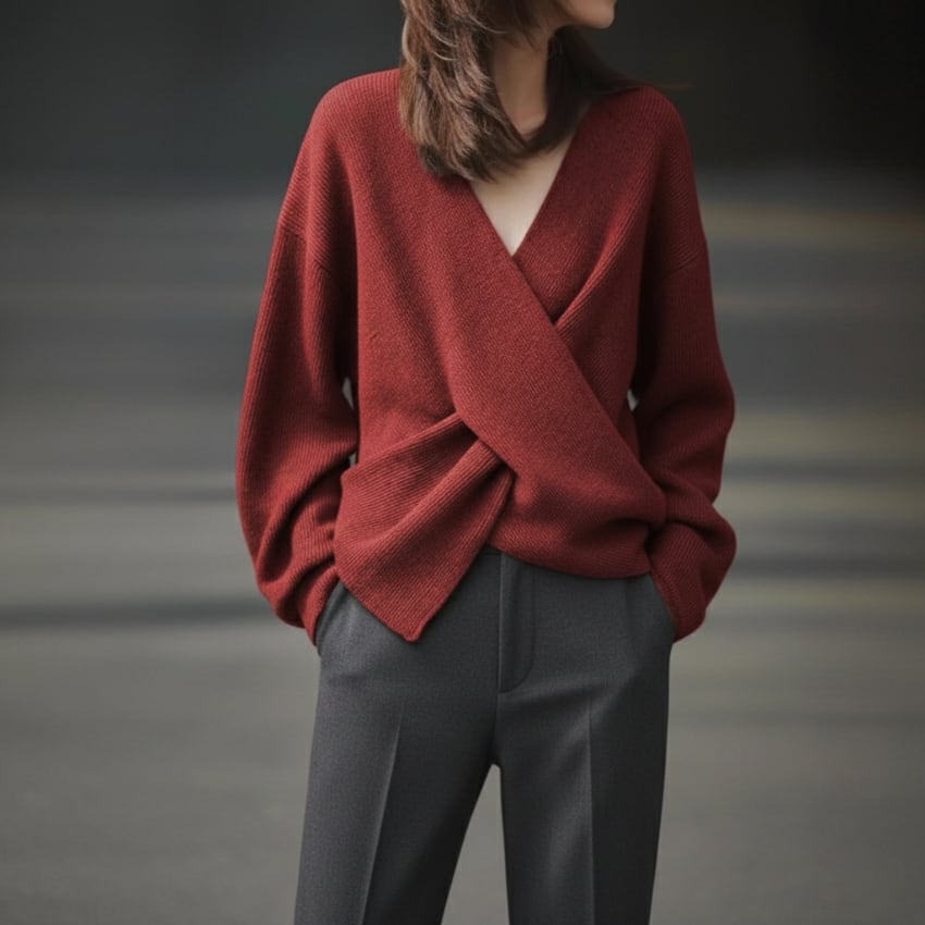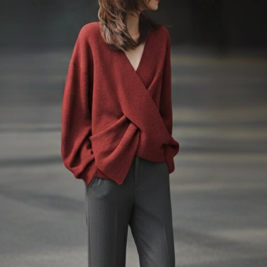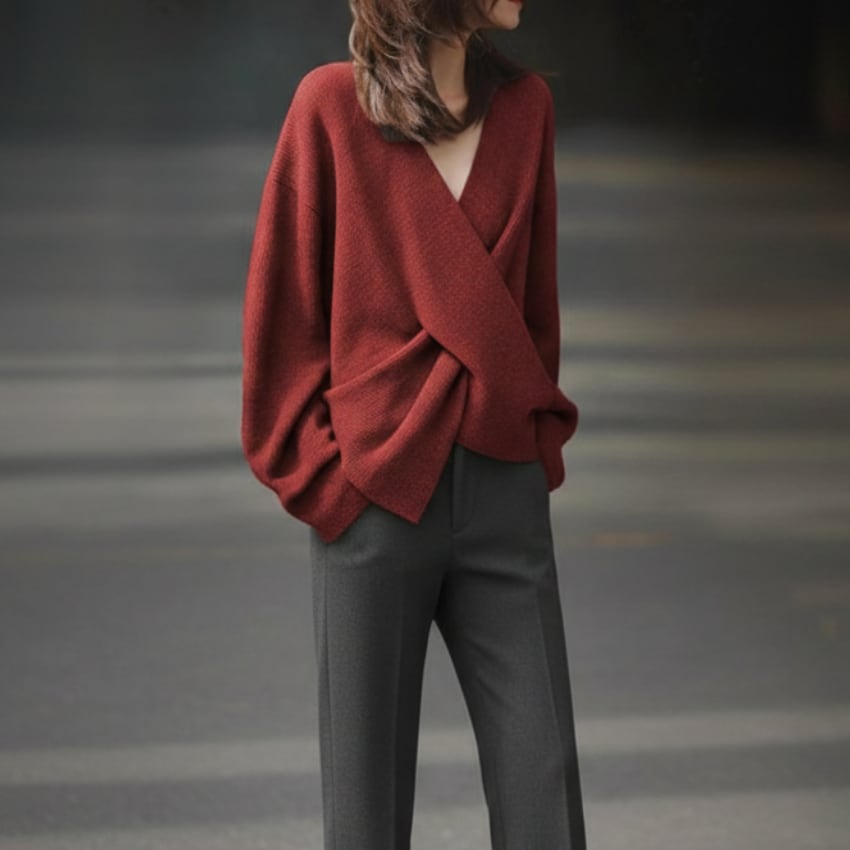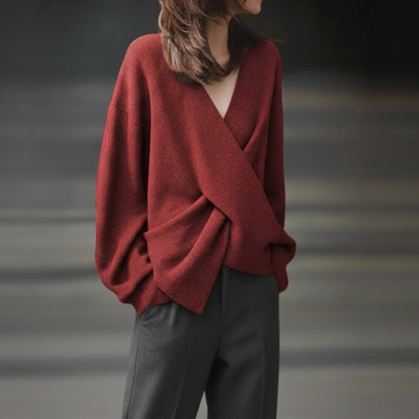 クロスオーバーVネックセーターは、トレンドを押さえたディティールが際立つニットアイテムです。鮮やかなレッドとシックなグレーの2色展開で、それぞれのスタイルに合わせた選択肢が魅力的です。Vネックデザインが顔周りをすっきりと見せ、さりげないセクシーさをプラスします。しっかりとした素材感ながらも柔らかさを兼ね備えており、快適な着心地を実現しています。カジュアルなシーンからフォーマルな場面まで幅広く活躍するので、コーディネートのバリエーションが広がります。ぜひ、こちらのセーターをあなたのワードローブに加えて、シンプルながらも印象的なスタイルを楽しんでみてはいかがでしょうか。