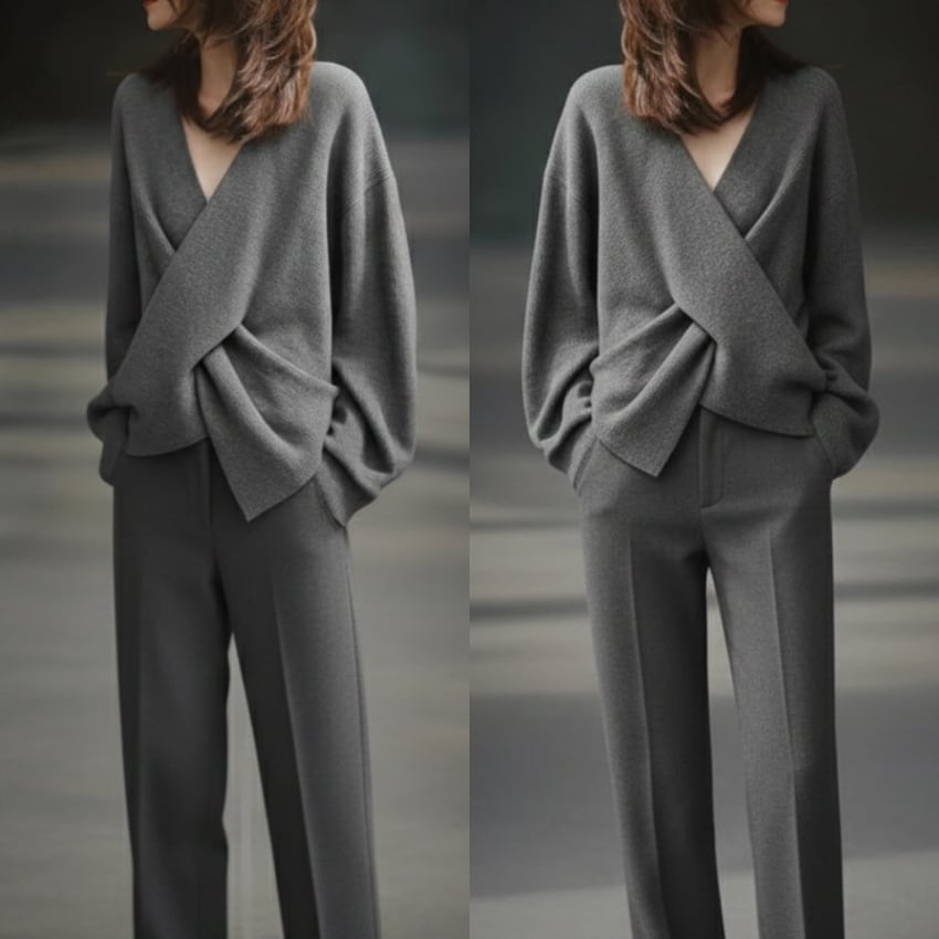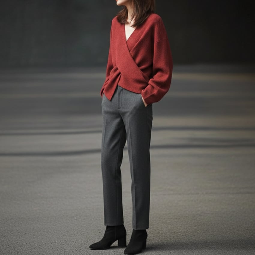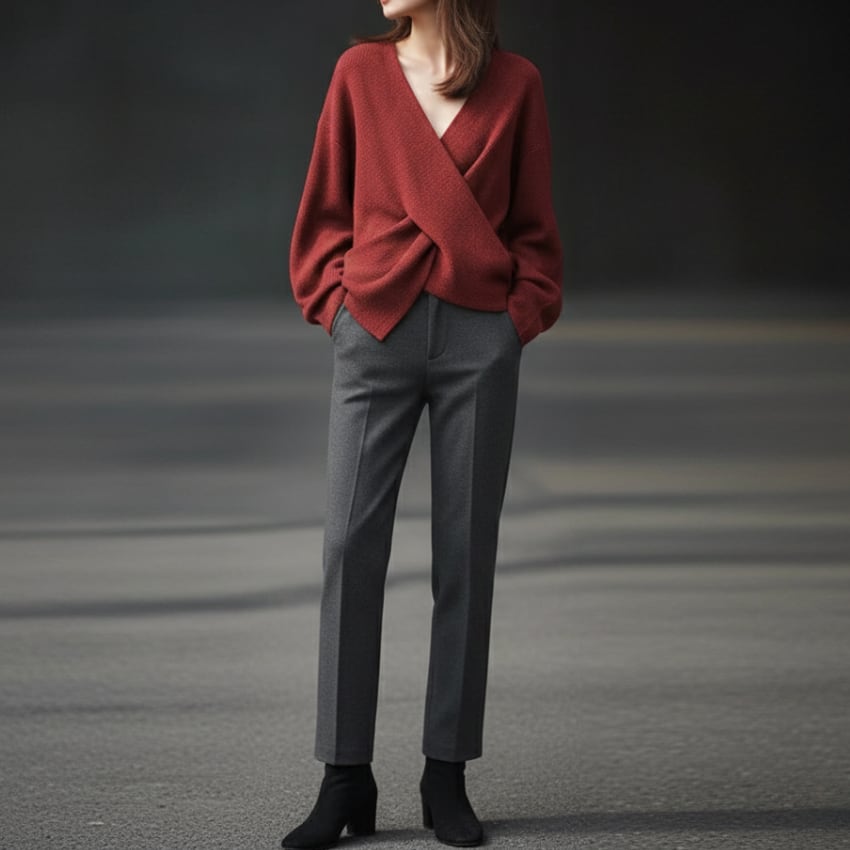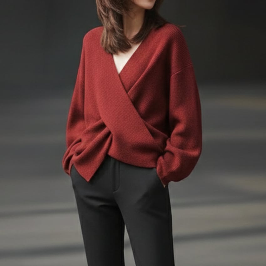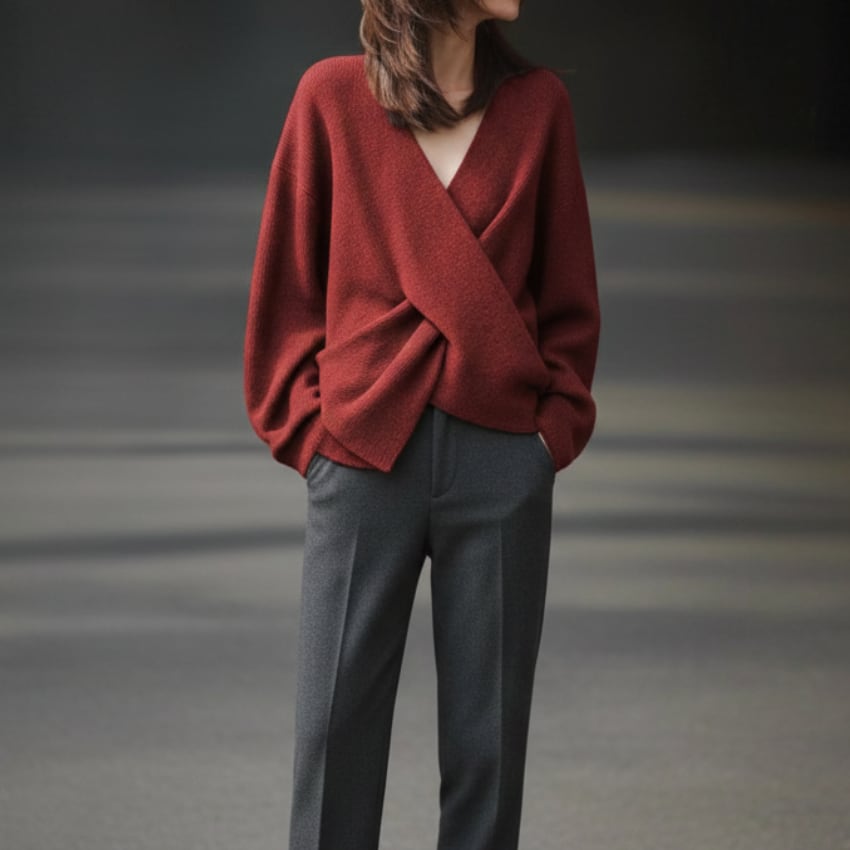 クロスオーバーVネックセーターは、トレンドを押さえたディティールが際立つニットアイテムです。鮮やかなレッドとシックなグレーの2色展開で、それぞれのスタイルに合わせた選択肢が魅力的です。Vネックデザインが顔周りをすっきりと見せ、さりげないセクシーさをプラスします。しっかりとした素材感ながらも柔らかさを兼ね備えており、快適な着心地を実現しています。カジュアルなシーンからフォーマルな場面まで幅広く活躍するので、コーディネートのバリエーションが広がります。ぜひ、こちらのセーターをあなたのワードローブに加えて、シンプルながらも印象的なスタイルを楽しんでみてはいかがでしょうか。