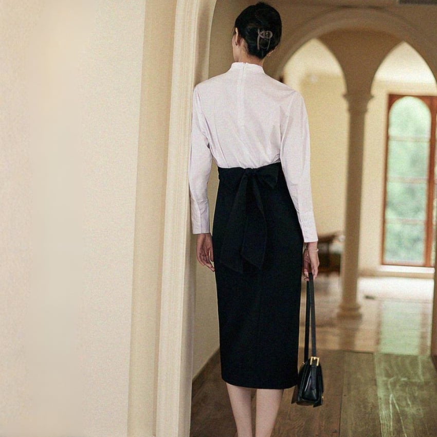 春の新作 フレンチレトロハイウエストフロントスリットスカート BM1307
