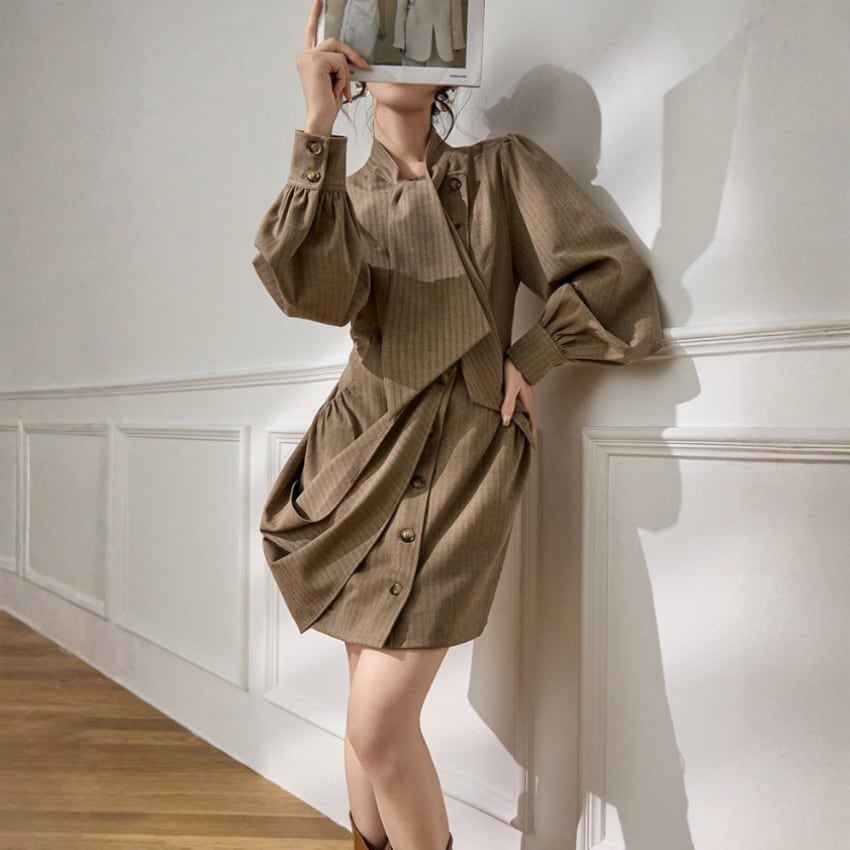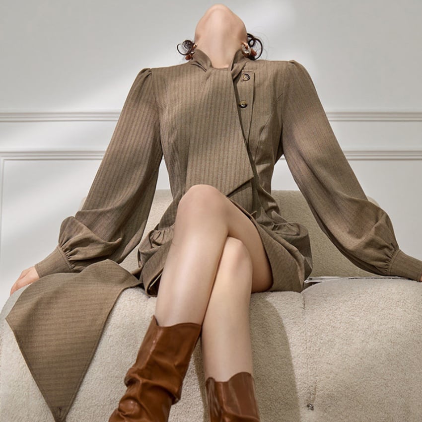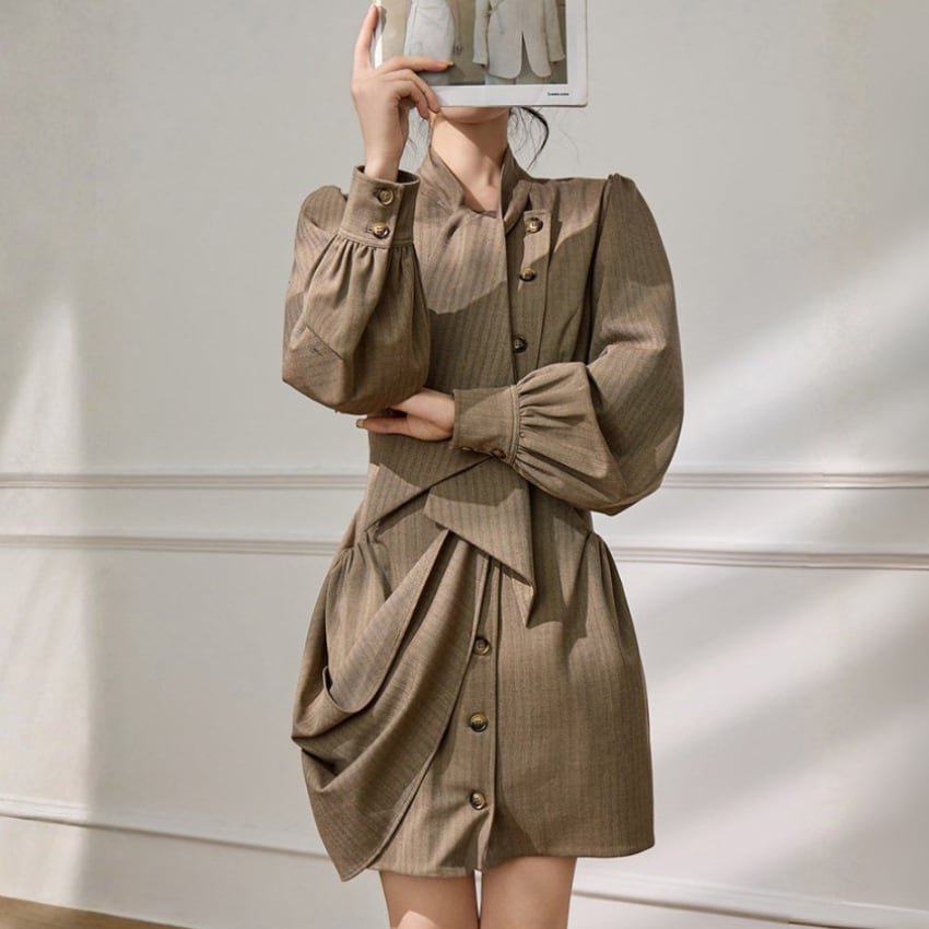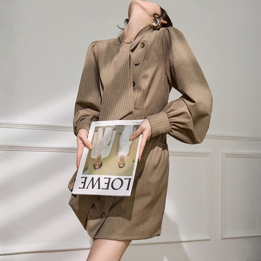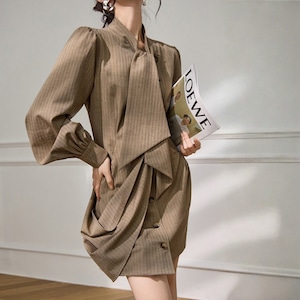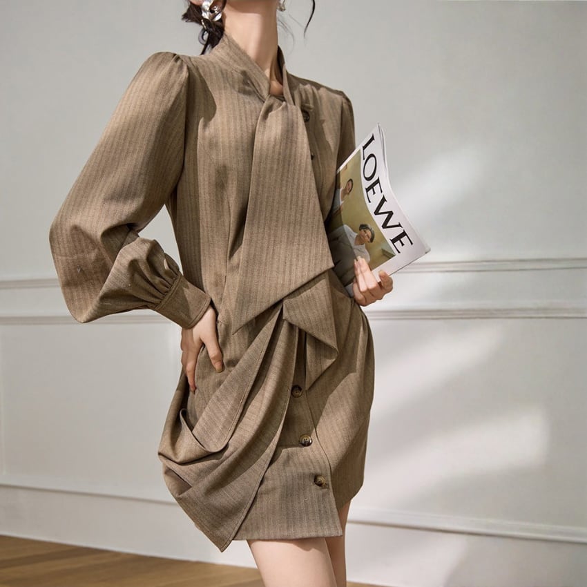 コンストラクトストライプフレンチスタイルミニワンピースは、軽やかな素材感と程よいミニ丈が魅力の一着です。フェミニンなブラウンのストライプデザインが、女性らしいシルエットを際立たせ、華やかさをプラスします。カジュアルな日常使いから、特別な日のお出かけまで幅広く活躍すること間違いなしです。さりげないおしゃれを楽しむために、こちらのワンピースをぜひコーディネートに加えてみてはいかがでしょうか。