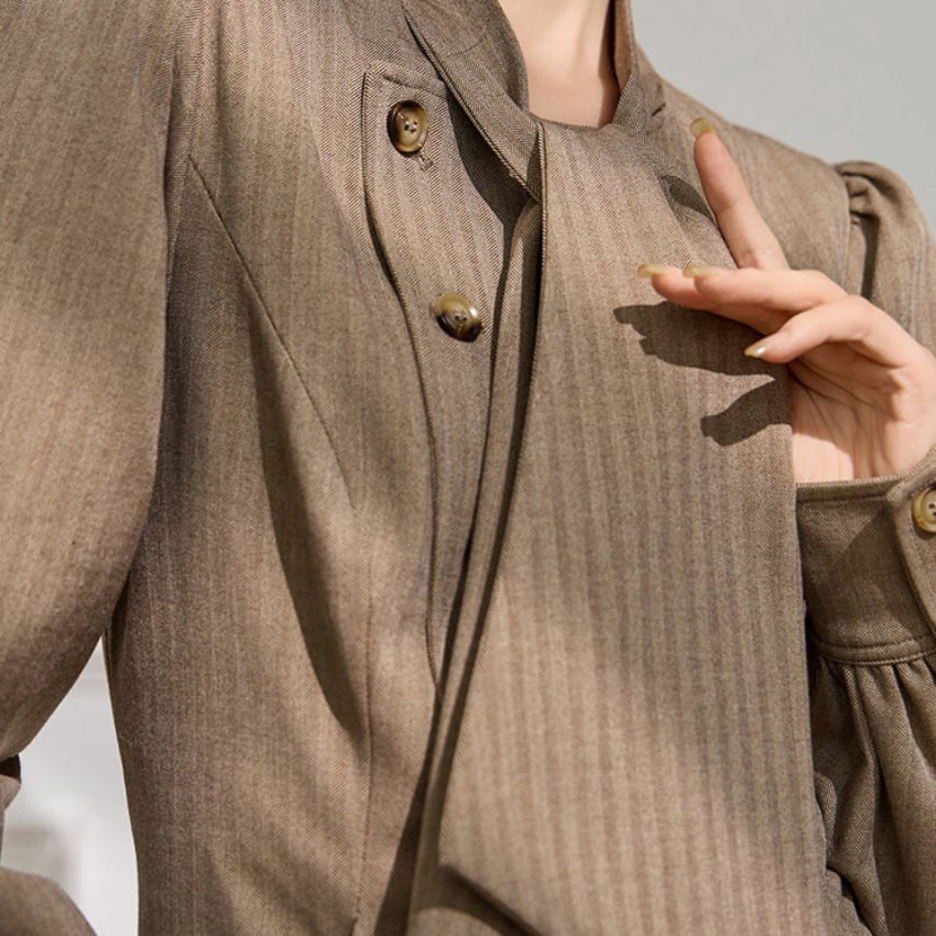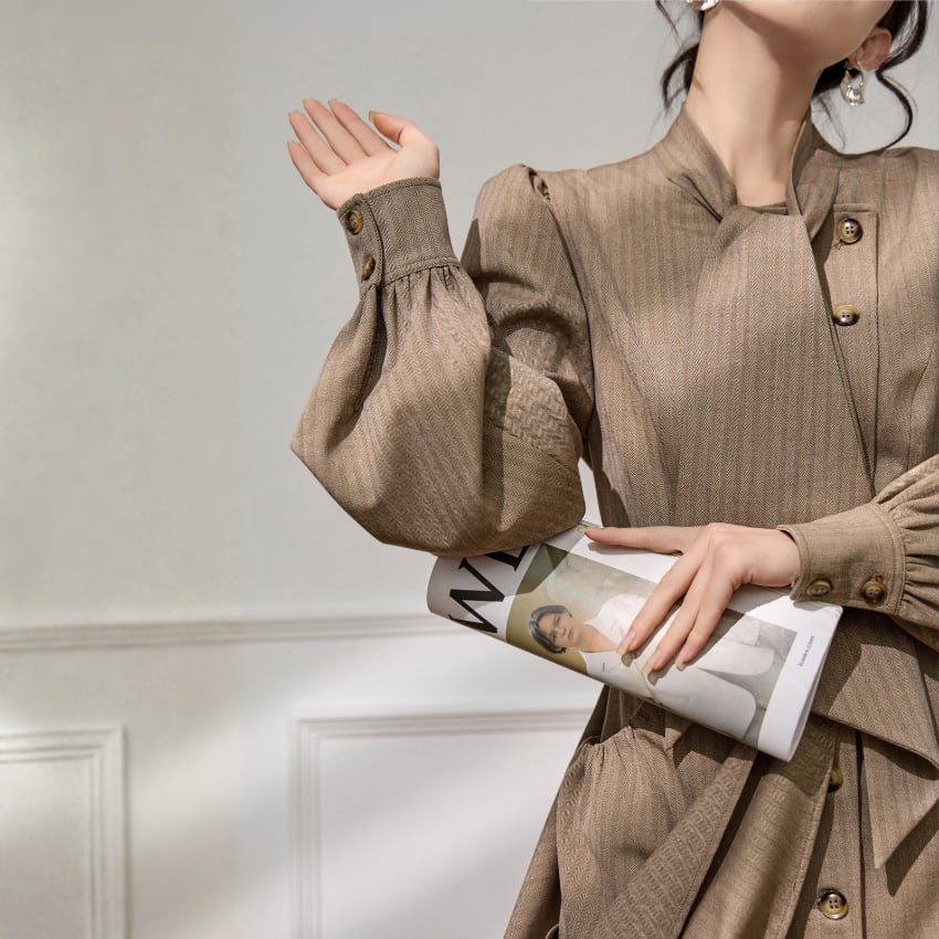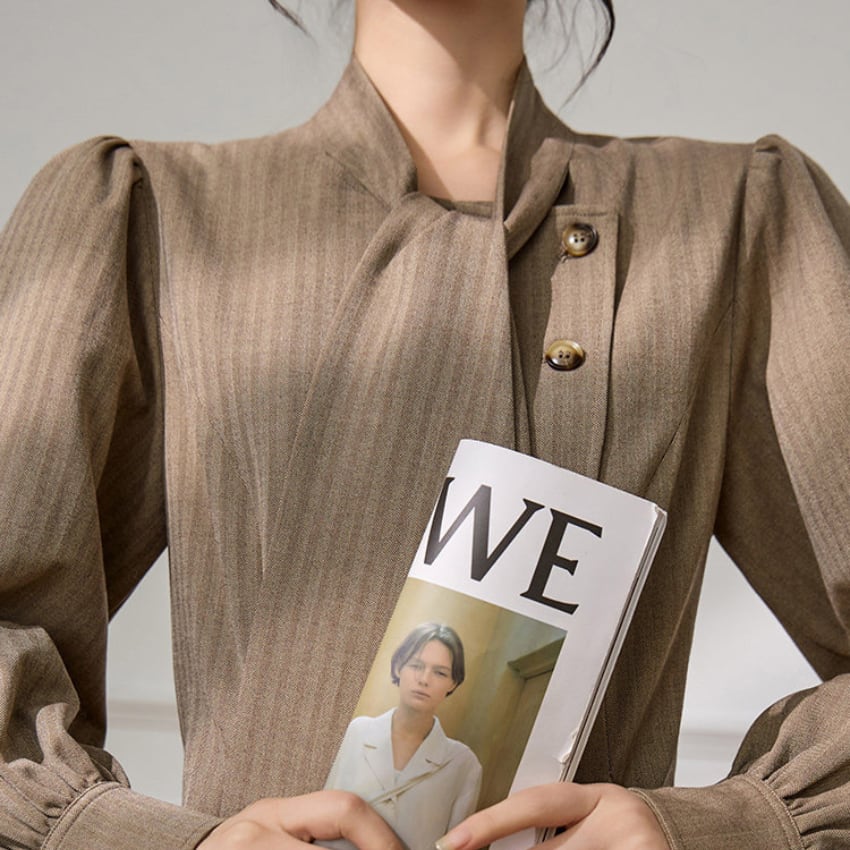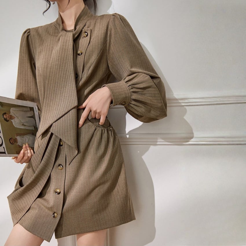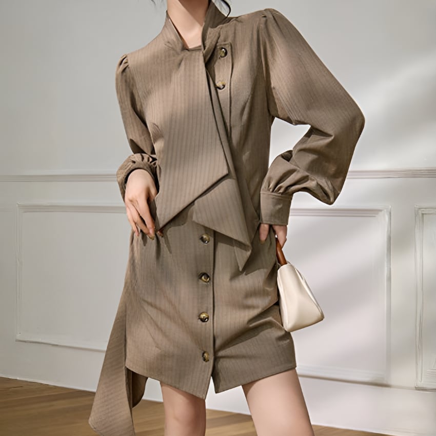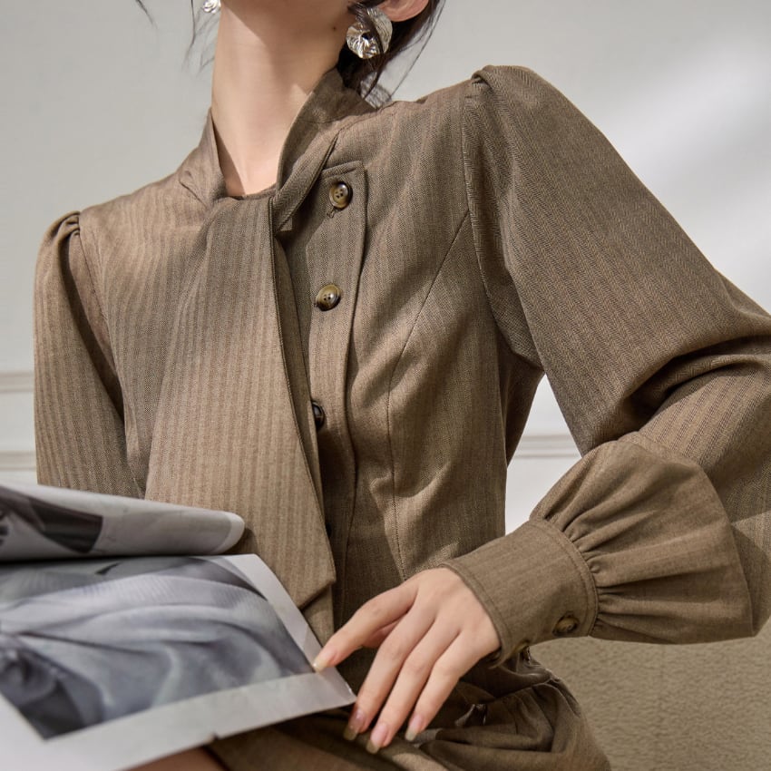 コンストラクトストライプフレンチスタイルミニワンピースは、軽やかな素材感と程よいミニ丈が魅力の一着です。フェミニンなブラウンのストライプデザインが、女性らしいシルエットを際立たせ、華やかさをプラスします。カジュアルな日常使いから、特別な日のお出かけまで幅広く活躍すること間違いなしです。さりげないおしゃれを楽しむために、こちらのワンピースをぜひコーディネートに加えてみてはいかがでしょうか。