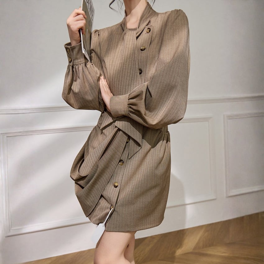 コンストラクトストライプフレンチスタイルミニワンピース BM1311
