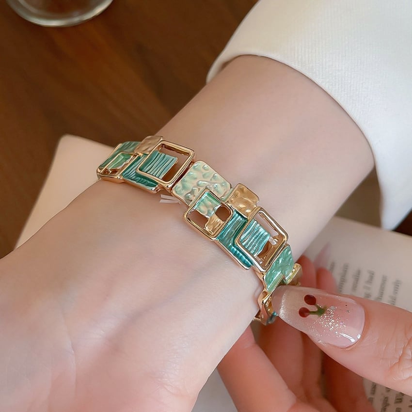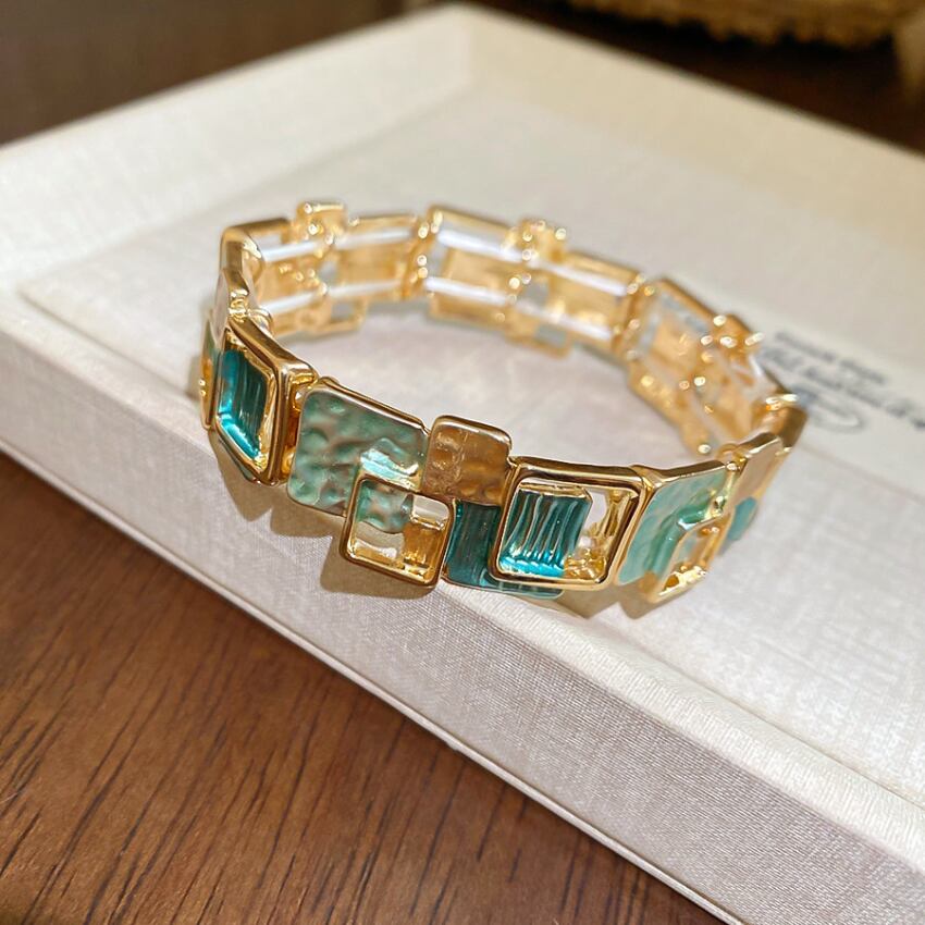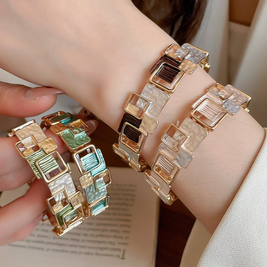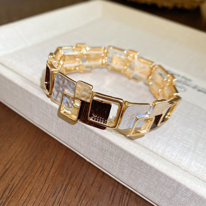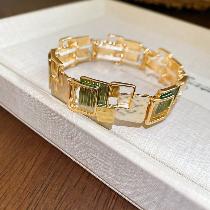 レトロ幾何学スクエアパッチワークブレスレット BM1327