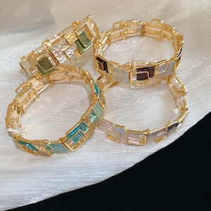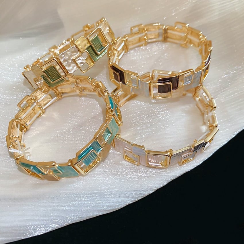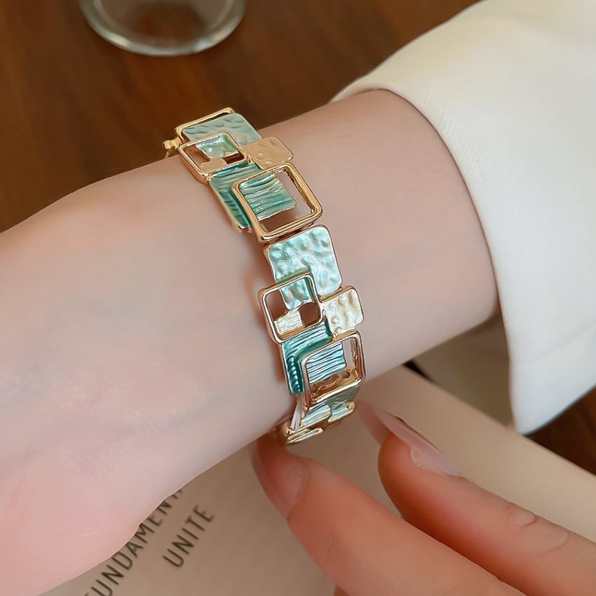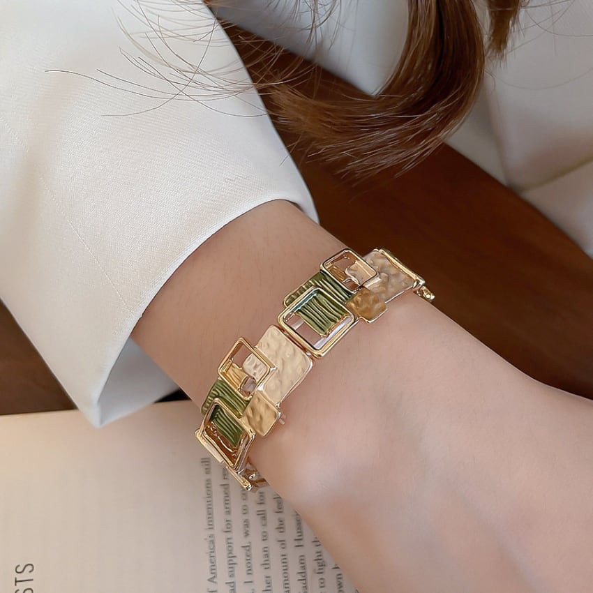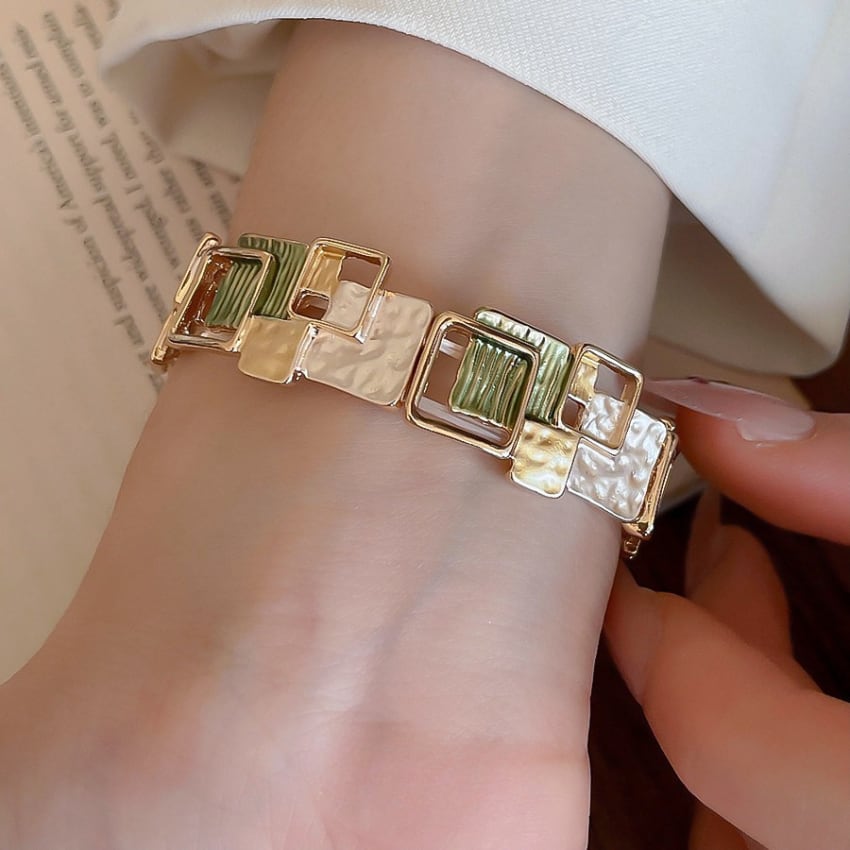 レトロ幾何学スクエアパッチワークブレスレット BM1327