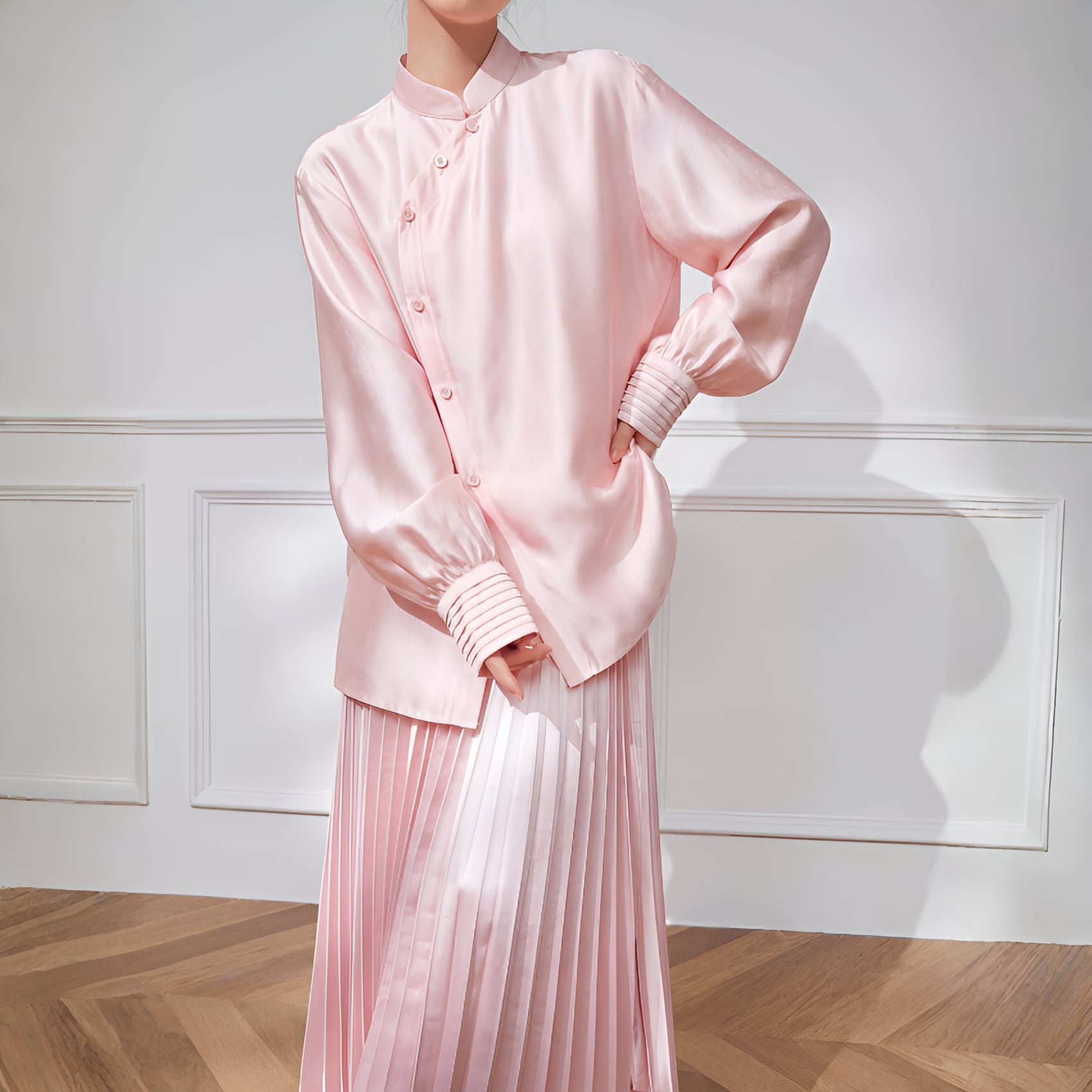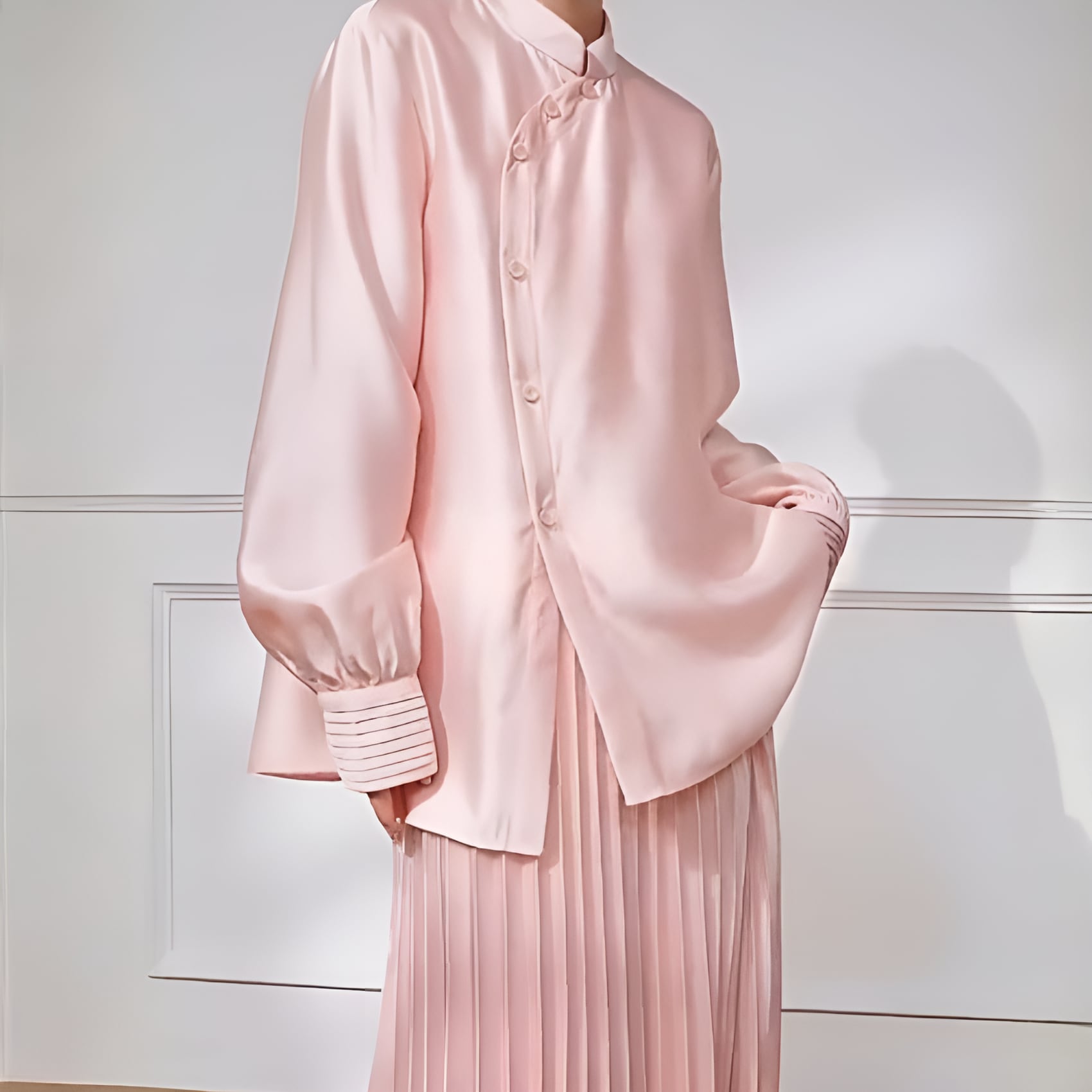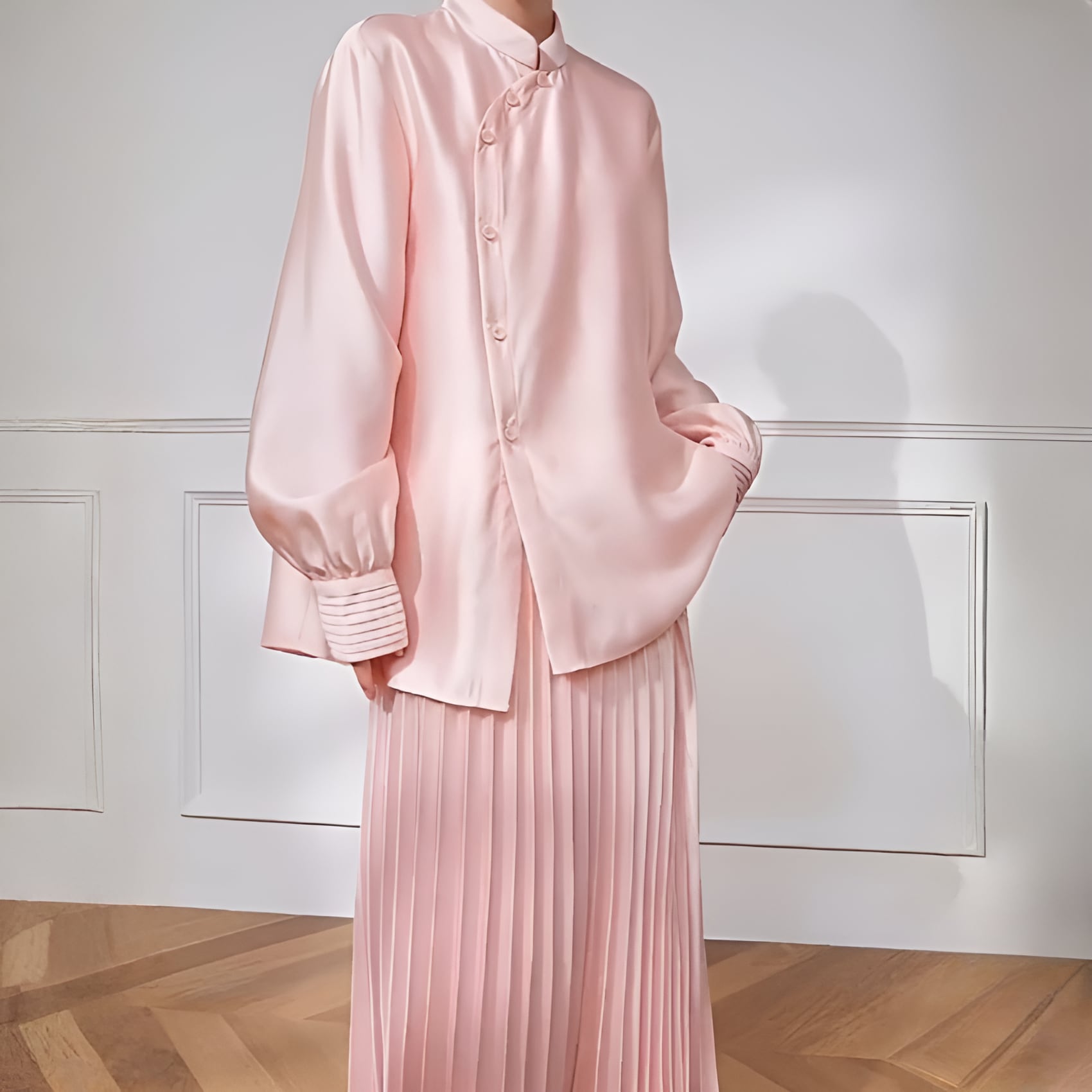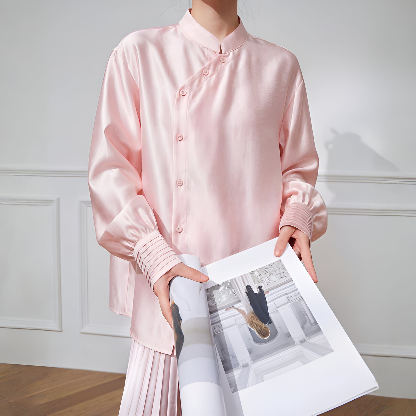 アシンメトリーカラー スタンドレトロブラウスは、ピンクの柔らかな色合いと独自のデザインが魅力の一着です。アシンメトリーなカラーがセンスを感じさせ、スタンドカラーが首元を華やかに演出します。流れるようなシルエットが女性らしさを引き立てつつ、カジュアルからフォーマルまで、さまざまなシーンにお使いいただけるアイテムです。ぜひ、こちらの素敵なブラウスをあなたのワードローブに加えて、おしゃれを楽しんでみてはいかがでしょうか。