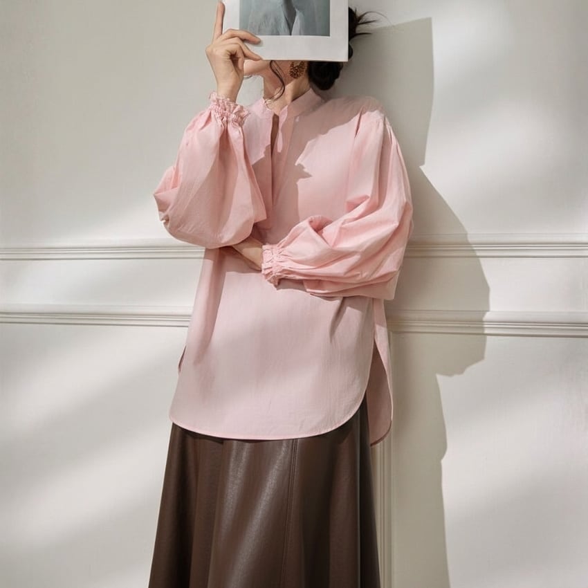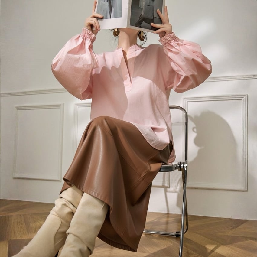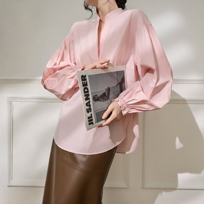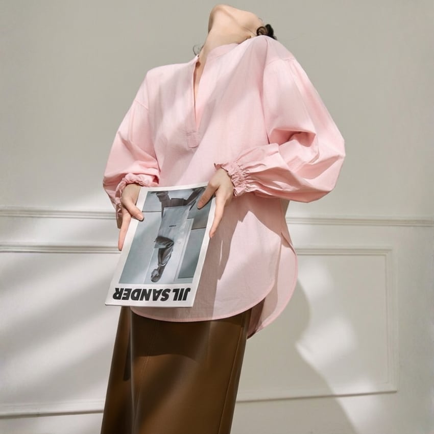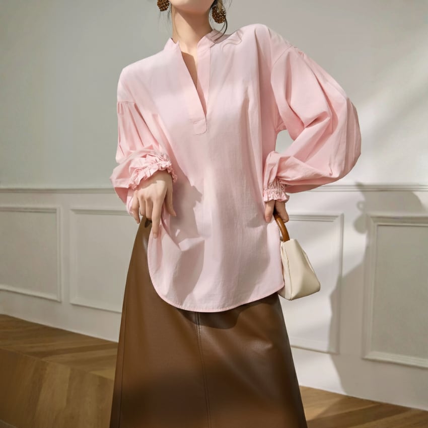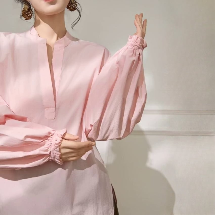 パフスリーブVネックカジュアル万能シャツ BM1330