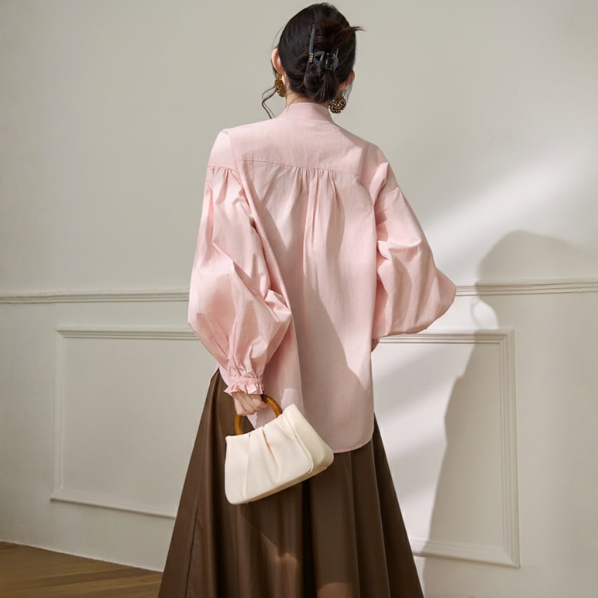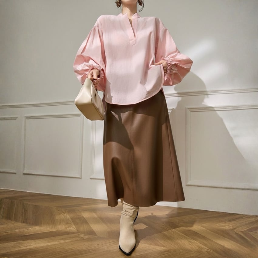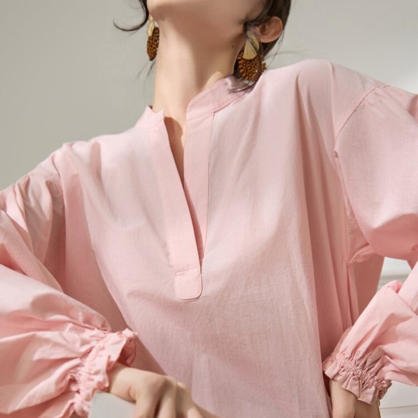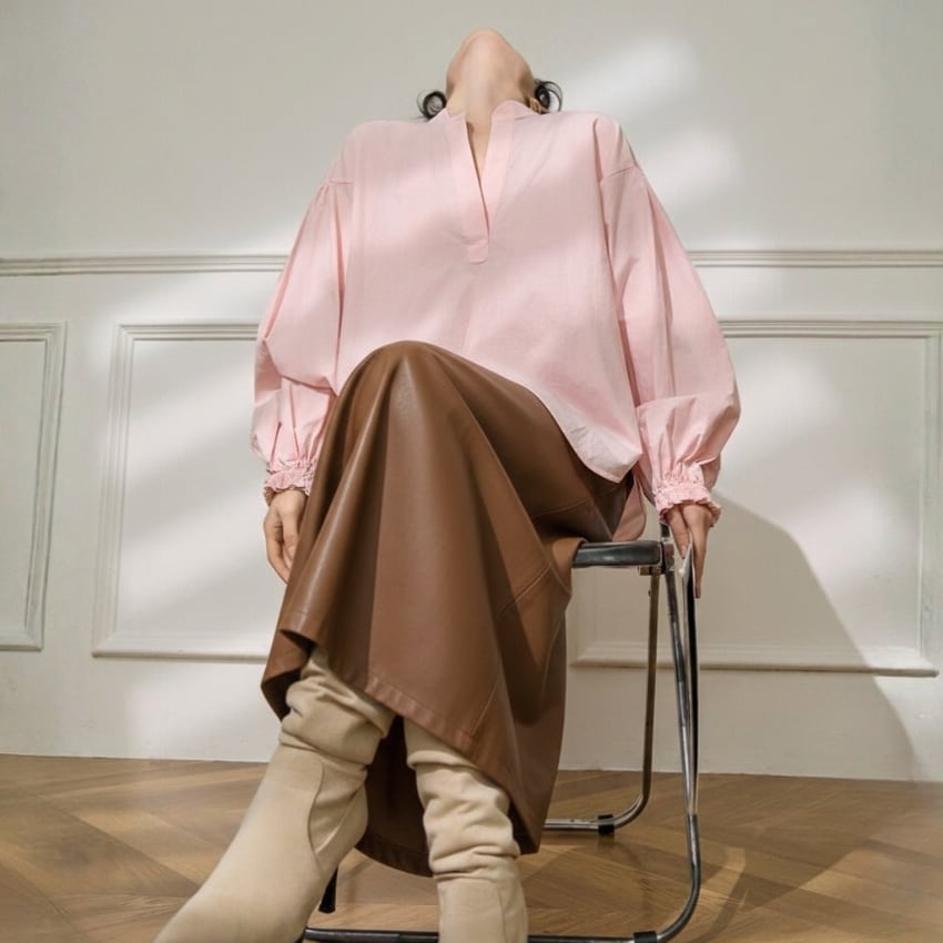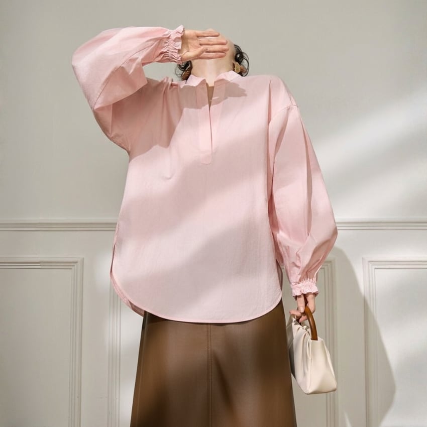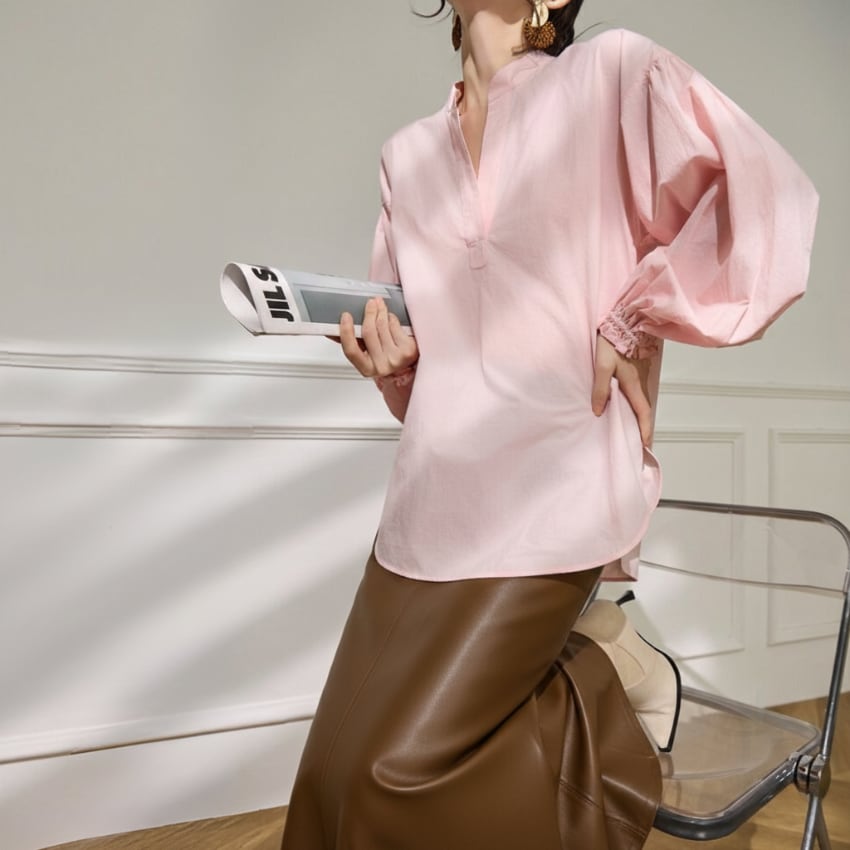 パフスリーブVネックカジュアル万能シャツ BM1330