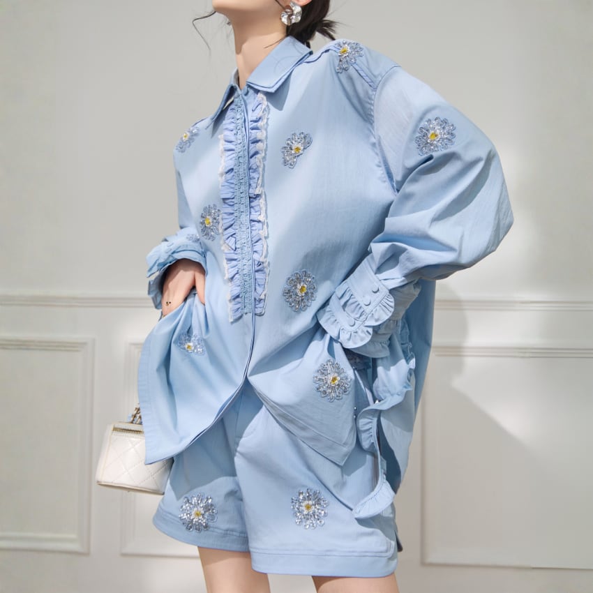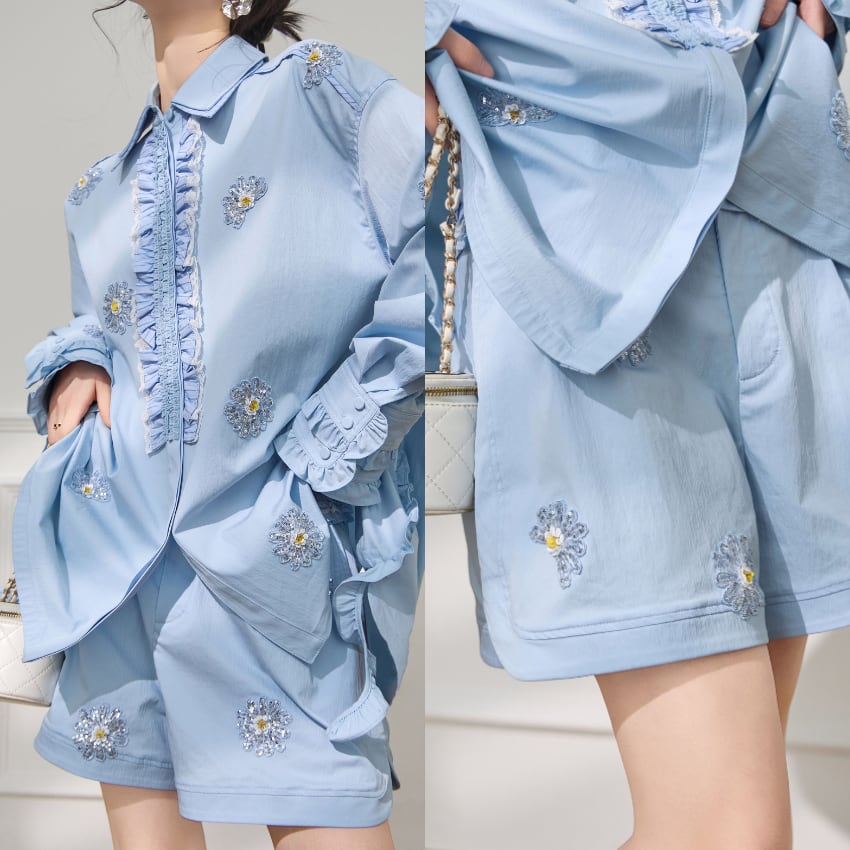新作ビーズデザインショートパンツは、爽やかなブルーの色合いが際立つトレンド感満載の一着です。華やかなビーズデザインが特徴で、カジュアルなスタイルからリゾートファッションまで幅広いシーンで活躍します。軽やかな素材感と快適なフィット感が、デイリーユースに最適なアイテムです。ぜひ、こちらの素敵なショートパンツをあなたのワードローブに加えて、おしゃれを楽しんでみてはいかがでしょうか。