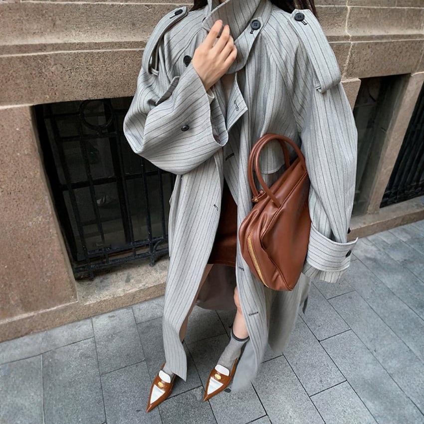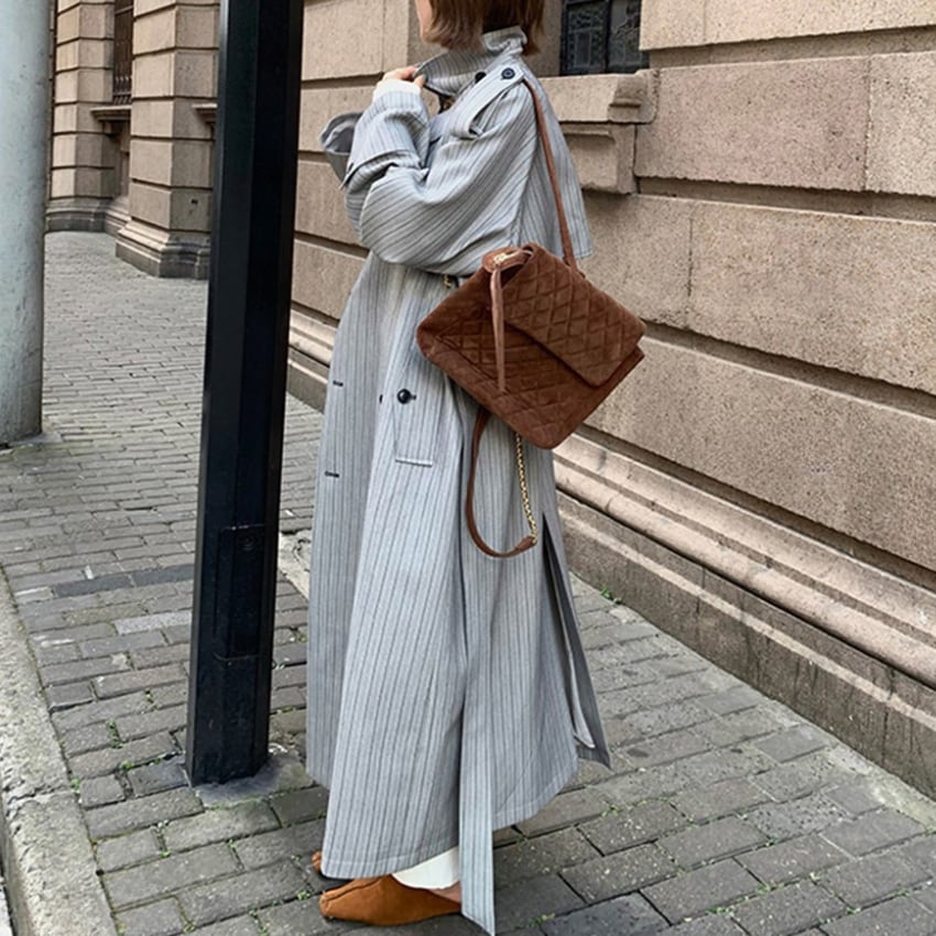 2026年新作ダブルブレストストライプトレンチコートは、爽やかなグレーが特徴のゆったりとしたデザインで、どんなスタイルにもマッチします。ストライプのシンプルなデザインは、上品さを引き立てつつ、カジュアルなコーディネートにも取り入れやすいアイテムです。ゆったりしたシルエットは、動きやすさを重視しており、快適な着心地を提供します。季節の変わり目に欠かせないトレンチコートとして、ぜひあなたのワードローブに加えて、毎日のスタイリングに活躍させてみてはいかがでしょうか。